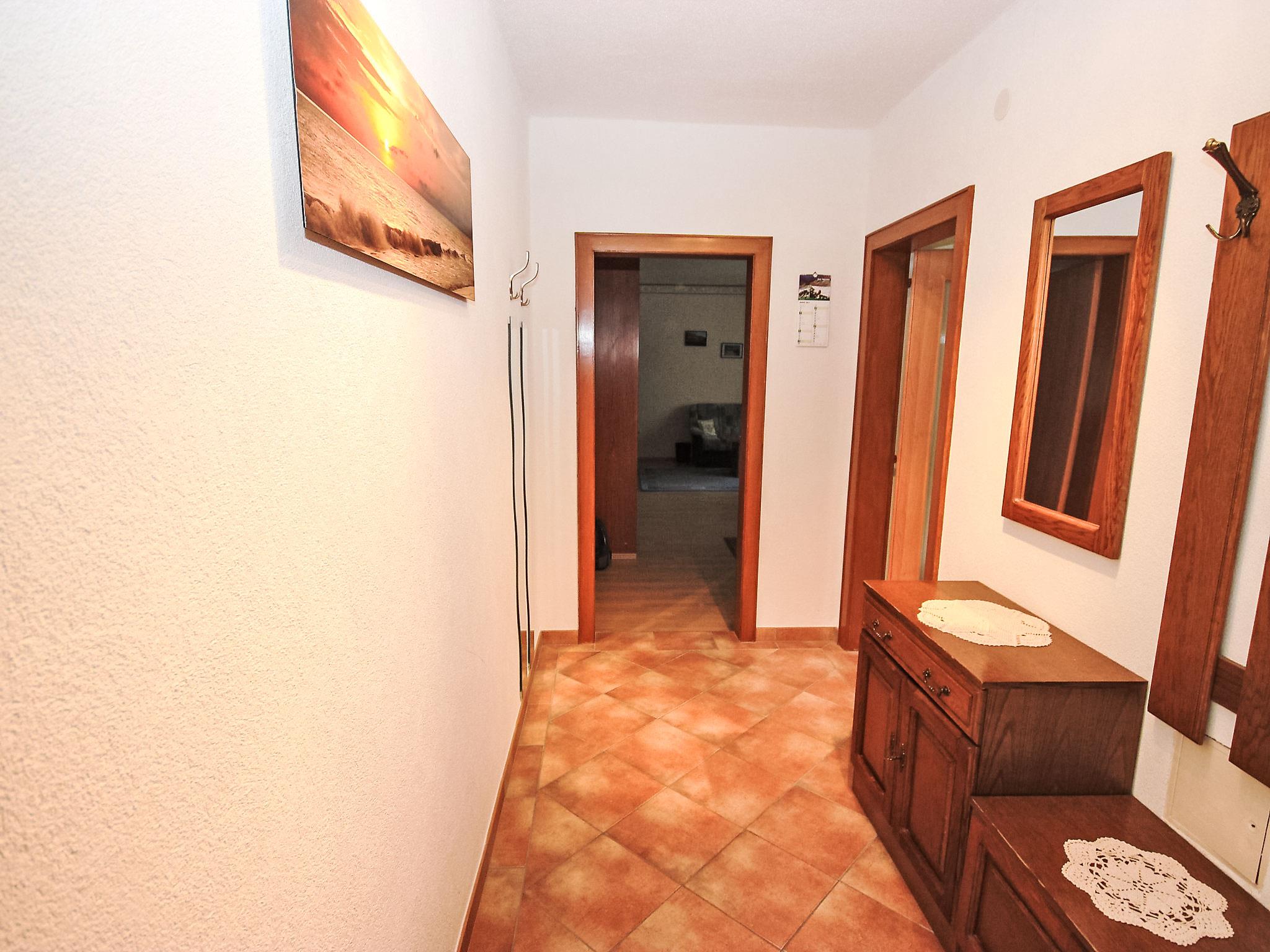 2-room apartment 62 m2, on the upper ground floor. Cosy furnishings: entrance hall. Large living/dining room with 1 double fold-away bed, dining nook and cable TV (flat screen), radio. Exit to the balcony. 1 room with 2 beds. Kitchen (4 hot plates, oven, microwave). Shower/WC. Balcony. Please note: non-smokers only. Smoke alarm.