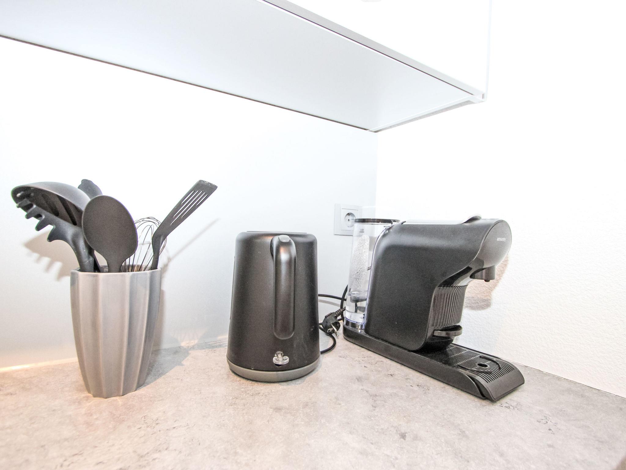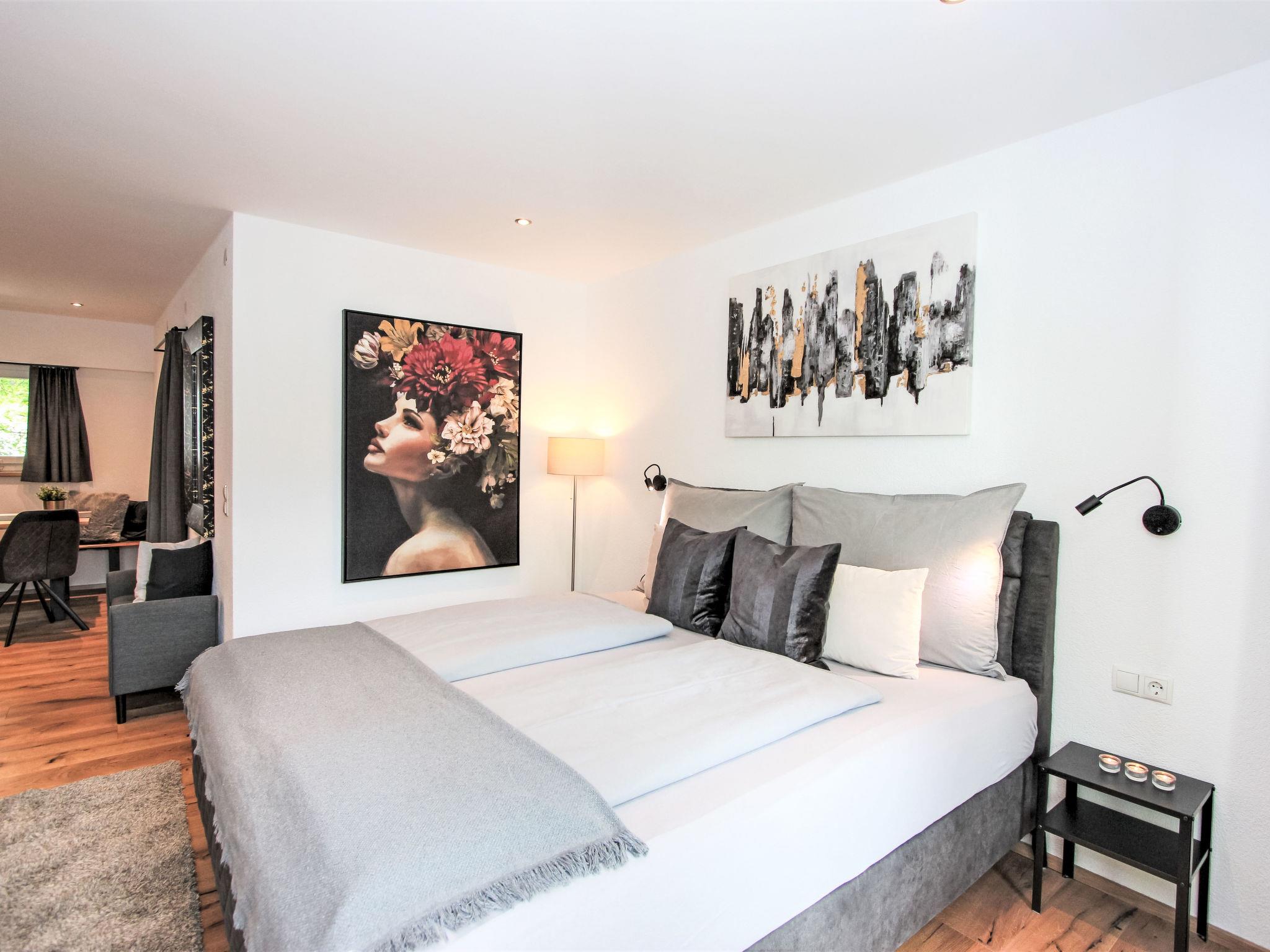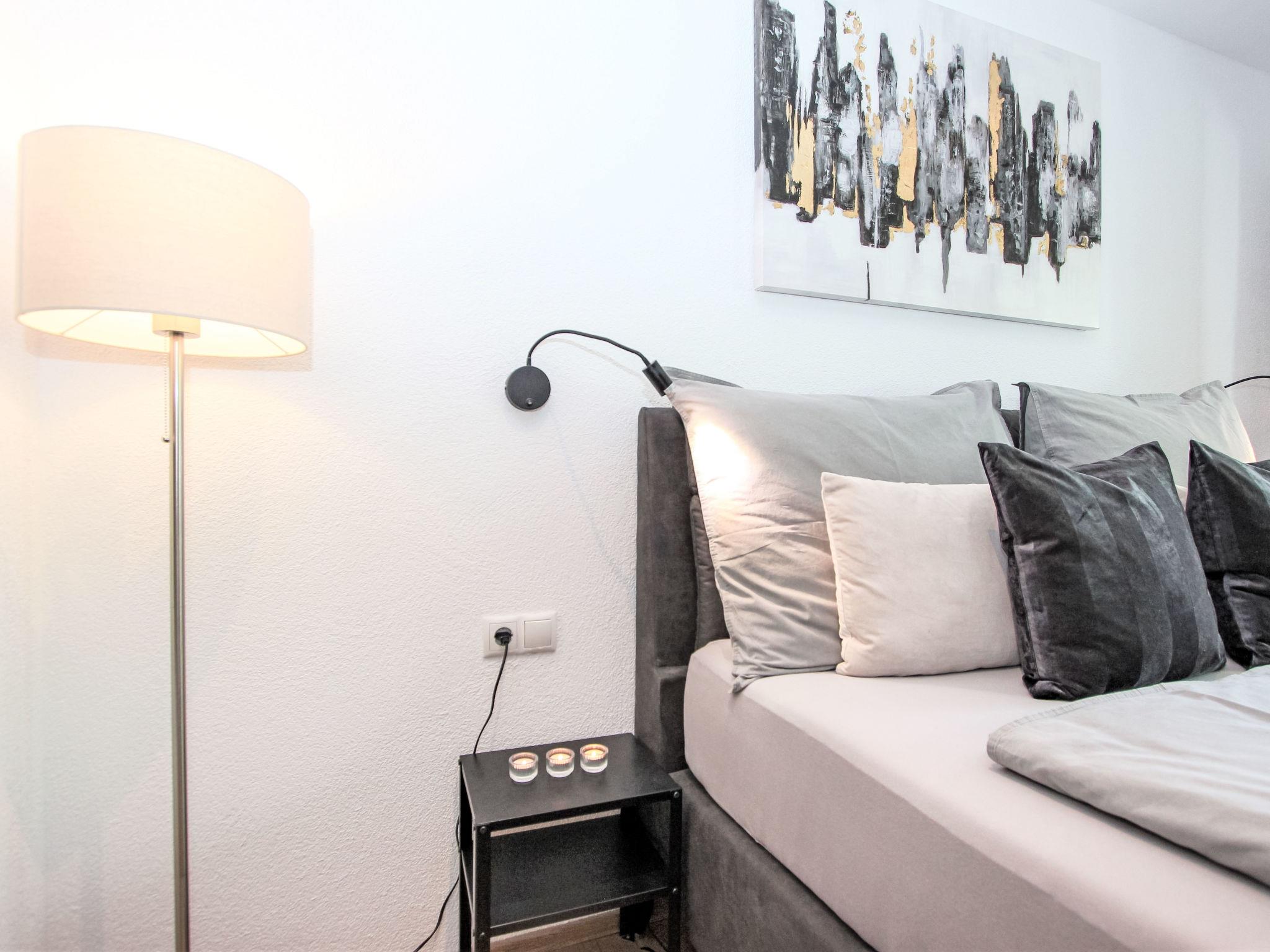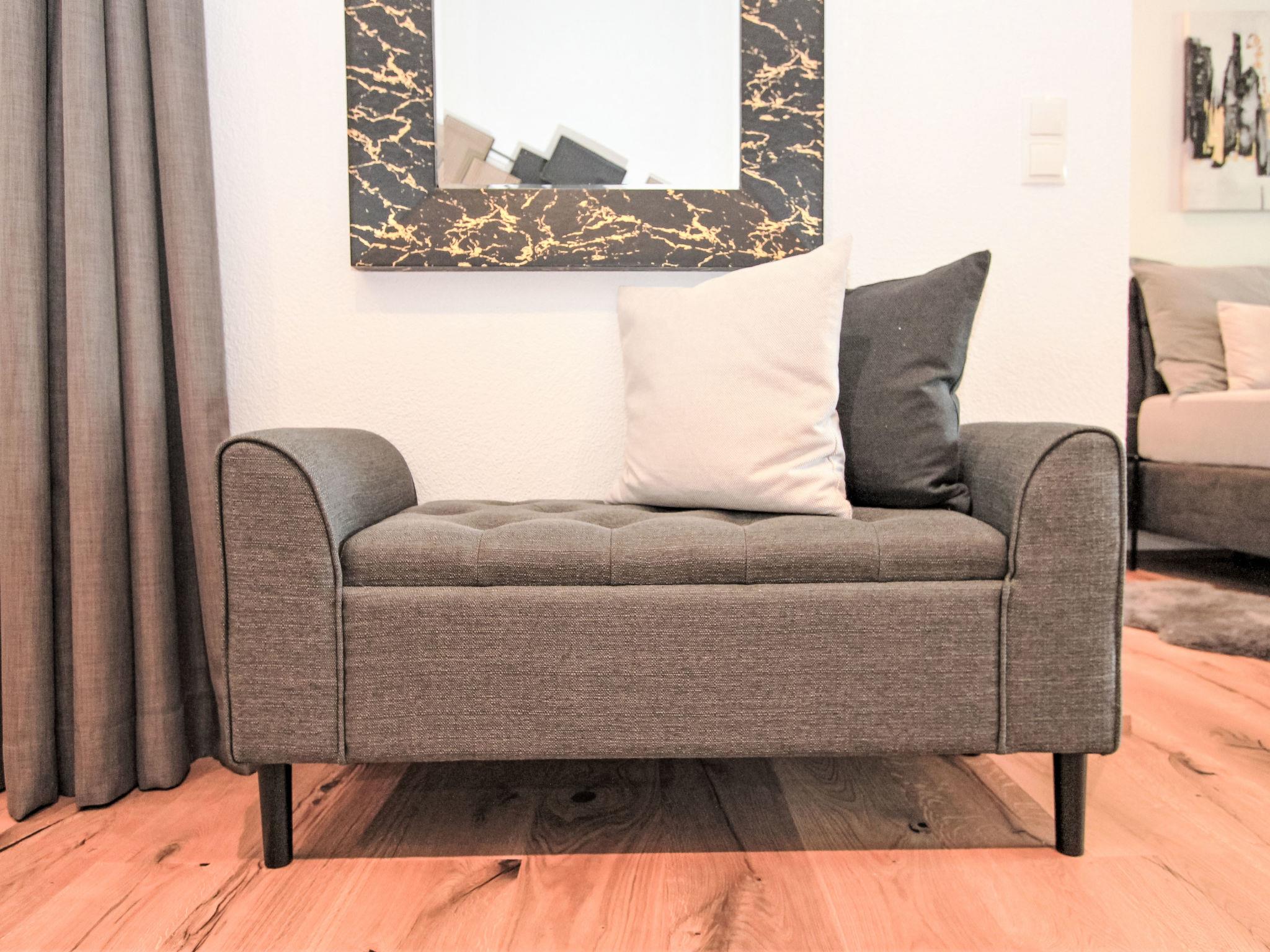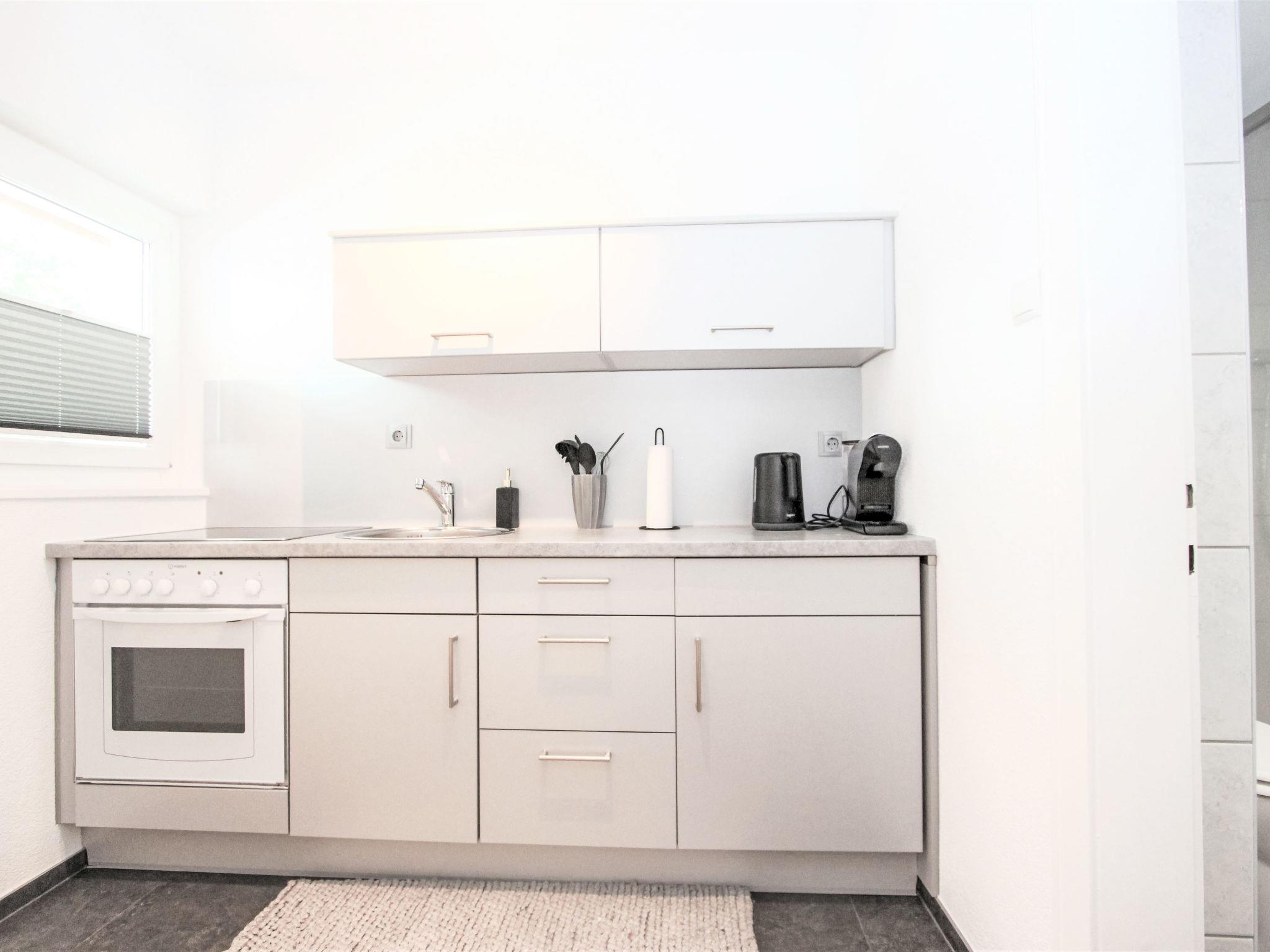 1-room apartment 33 m2 on 1st floor. Renovated in 2024, very comfortable and tasteful furnishings: living/sleeping room with 1 double bed and cable TV (flat screen). Exit to the balcony. Kitchen (oven, 4 ceramic glass hob hotplates, kettle, electric coffee machine, Capsules for coffee machine (Amarey / Nespresso) extra) with dining nook. Shower/WC. Balcony. Balcony furniture. View of the garden. Please note: non-smokers only. Smoke alarm.