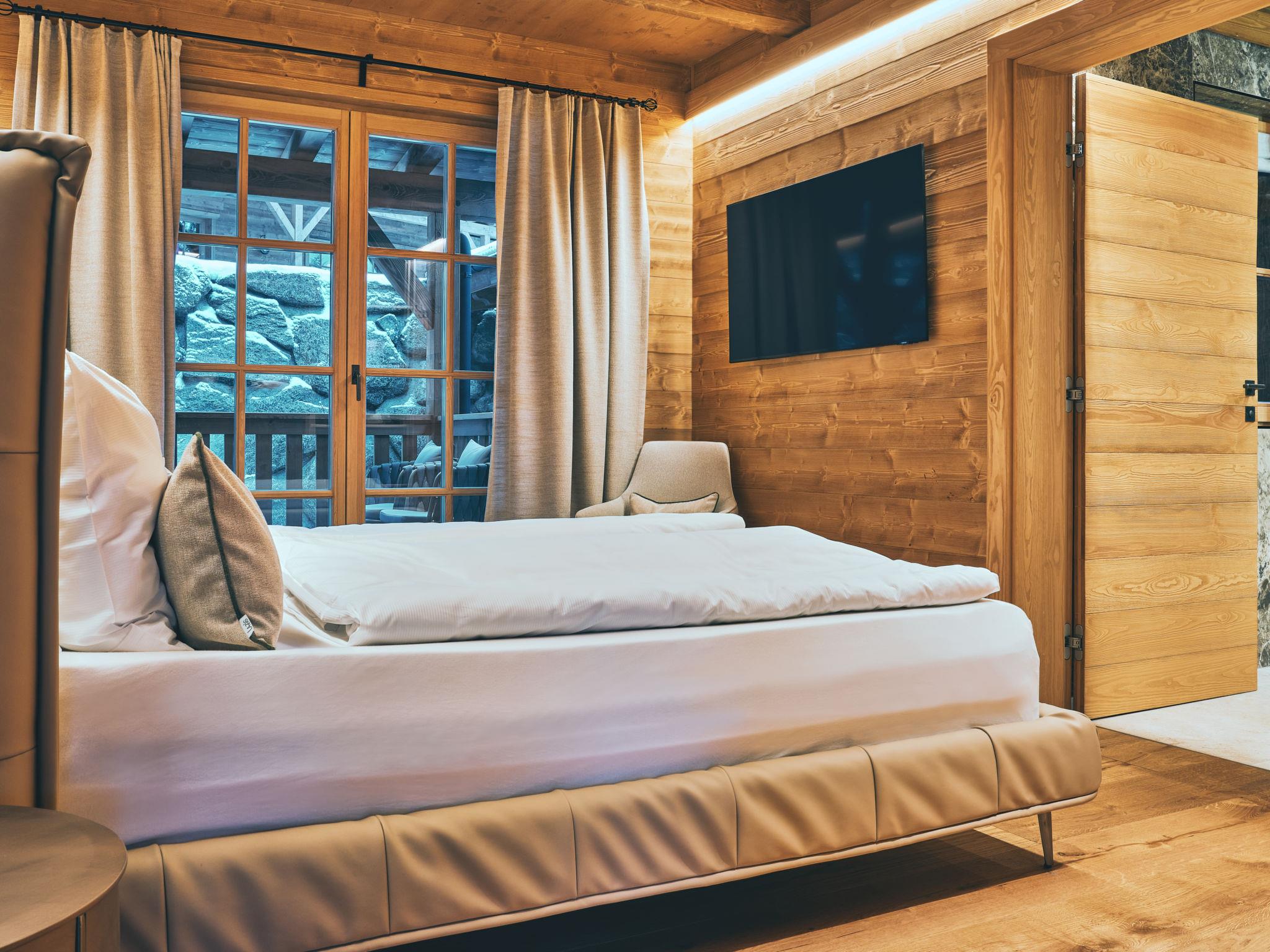 "Sissis Green Chalet Elisabeth", 4-room chalet 150 m2 on 2 levels. Luxurious and wooden furniture furnishings: entrance hall. 1 double bedroom with shower/WC, TV and digital TV (flat screen). Large kitchen-/living room (dishwasher, 4 induction hot plates, toaster, kettle, microwave, electric coffee machine, cooking island) with dining table, open-hearth fireplace, TV and digital TV (flat screen), electric shutters. Exit to the terrace. Upper floor: 2 double bedrooms, each room with bath/shower/WC, TV and digital TV (flat screen). Exit to the balcony. Wooden floors. Large terrace 25 m2. Terrace furniture, barbecue, deck chairs. Beautiful view of the mountains. Facilities: washing machine, sauna, hair dryer. Internet (WiFi). Parking. E-charging station. Please note: non-smoking house. Maximum 2 pets/ dogs allowed. Private entrance.