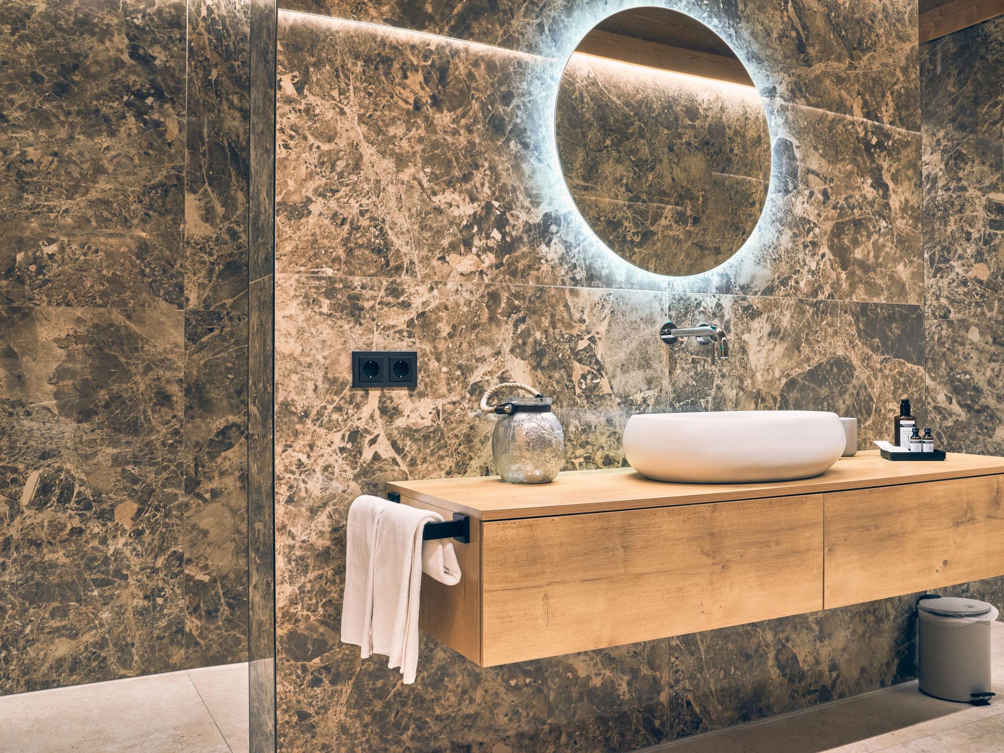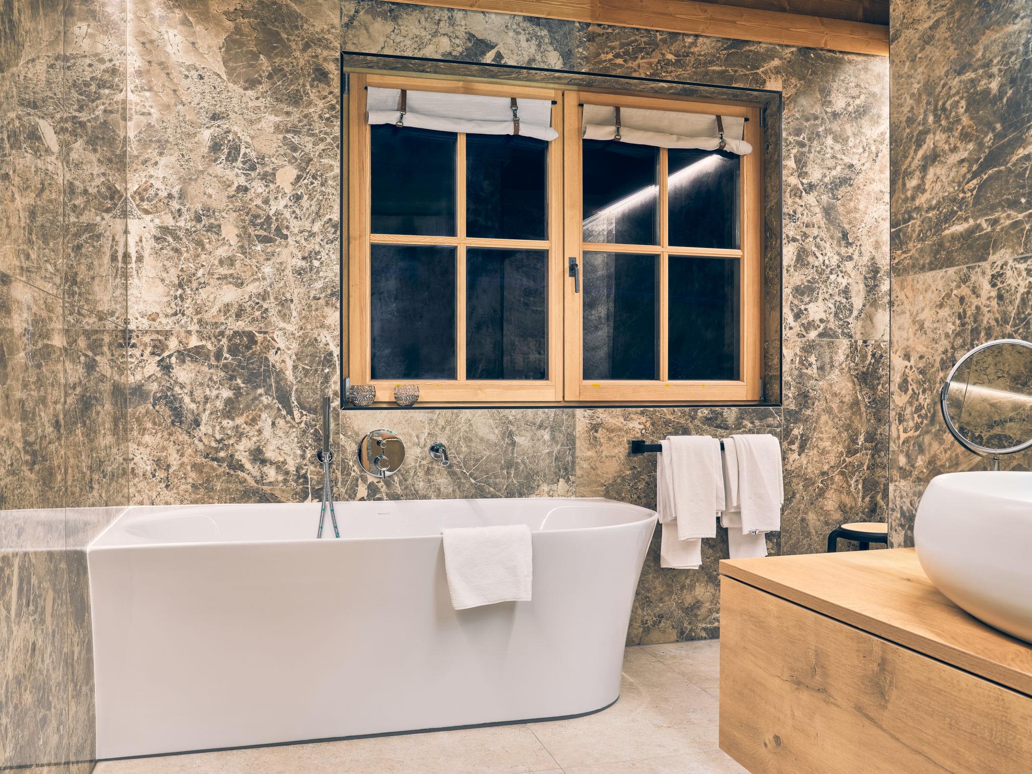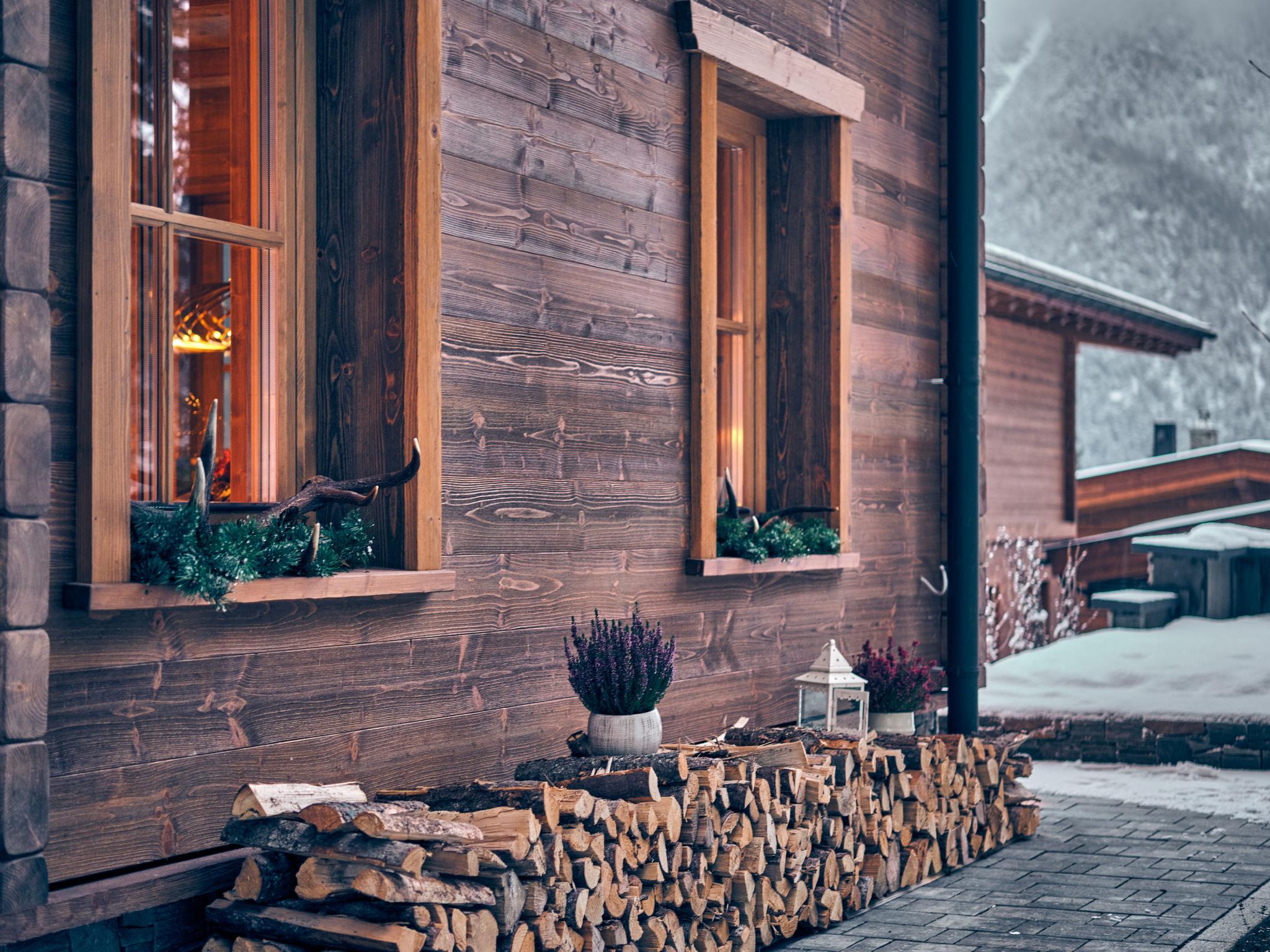 "Sissis Green Chalet Theresia", 4-room chalet 150 m2 on 2 levels. Luxurious and wooden furniture furnishings: entrance hall. 1 double bedroom with shower/WC, TV and digital TV (flat screen). Large kitchen-/living room (dishwasher, 4 induction hot plates, toaster, kettle, microwave, electric coffee machine, cooking island) with dining table, open-hearth fireplace, TV and digital TV (flat screen), electric shutters. Exit to the terrace. Upper floor: 2 double bedrooms, each room with bath/shower/WC, TV and digital TV (flat screen). Exit to the balcony. Wooden floors. Large terrace 25 m2. Terrace furniture, barbecue, deck chairs. Beautiful view of the mountains. Facilities: washing machine, sauna, hair dryer. Internet (WiFi, free). Parking. E-charging station. Please note: non-smoking house. Maximum 2 pets/ dogs allowed. Private entrance.