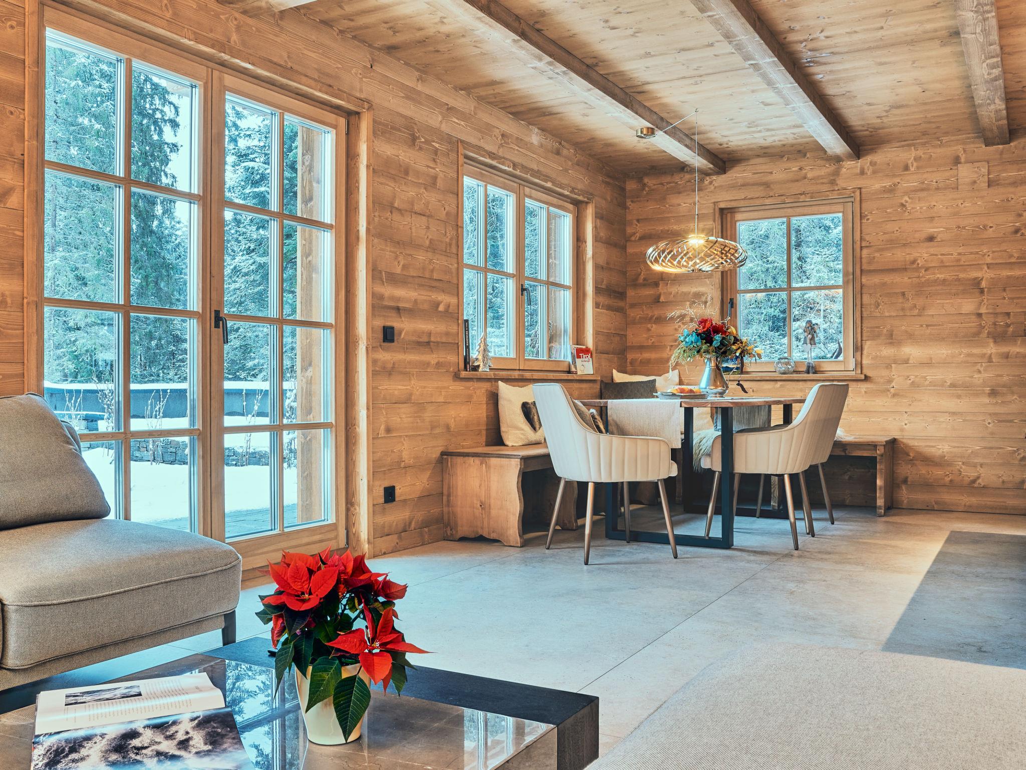 Weidach 5 km from Seefeld: Luxurious chalet "Sissis Green Chalet", 2 storeys. 4 houses in the residence. On the outskirts, 300 m from the centre of Weidach, in a quiet position, 10 m from the edge of the forest, 200 m from the skiing area. Private: small terraced garden, 100 m2, lawn for sunbathing. Terrace, garden furniture, barbecue. In the house: sauna, storage room for bicycles, storage room for skis, central heating system, air conditioning. Bread roll service (included). Motor access to the house. Parking (for 3 cars) at the house. E-charging station. Supermarket 500 m, restaurant 200 m, bar, café 300 m, 3 minute walk to the centre, bus stop "Weidach Kreithkapelle" 150 m, railway station "Seefeld" 6 km, indoor swimming pool 1 km. Golf course (9 hole) 5 km, indoor tennis centre 5 km, walking paths from the house 100 m, ski lift, slopes, ski rental 200 m, cross country ski track 500 m. Nearby attractions: Innsbruck 25 km, Garmisch-Partenkirchen 37 km, Adventurepark Area47 40 km. Well-known ski regions can easily be reached: Rosshütte 7 km, Axamer Lizum 32 km, Kühtai 43 km. Well-known lakes can easily be reached: Wildsee Seefeld 5 km. Hiking paths: Gaistal - Zugspitz 3 km, Karwendel 8 km. Please note: Additional accommodations can be booked.