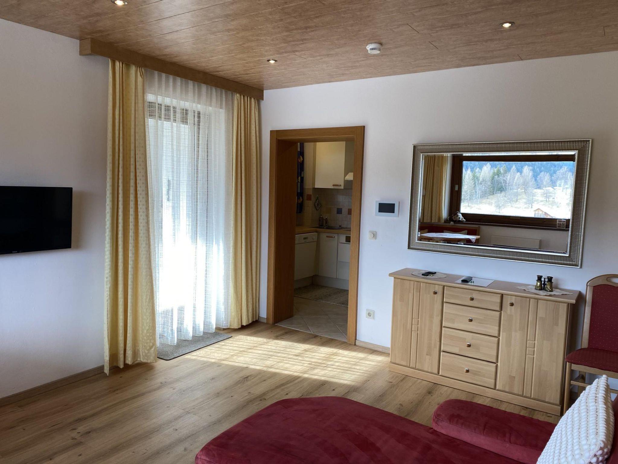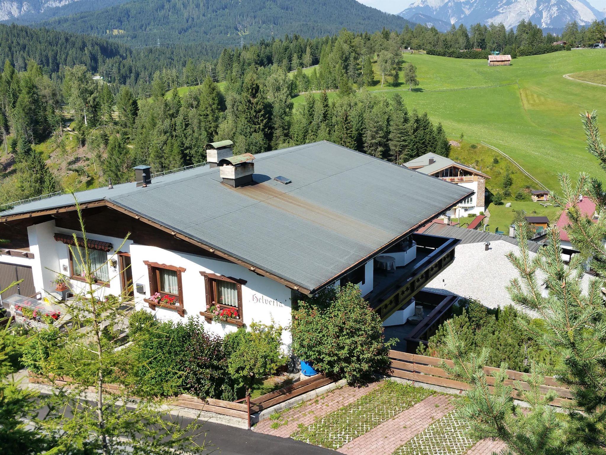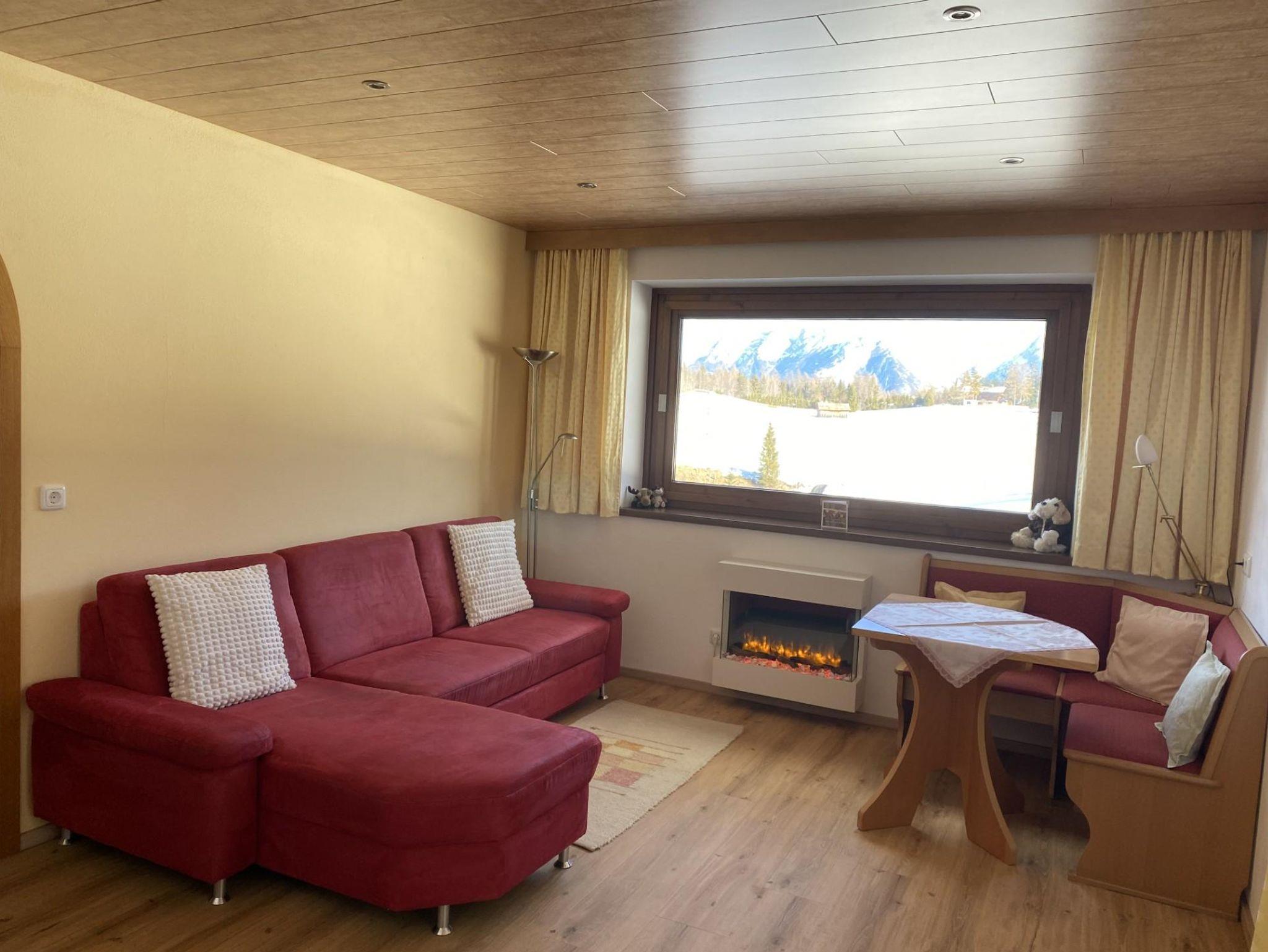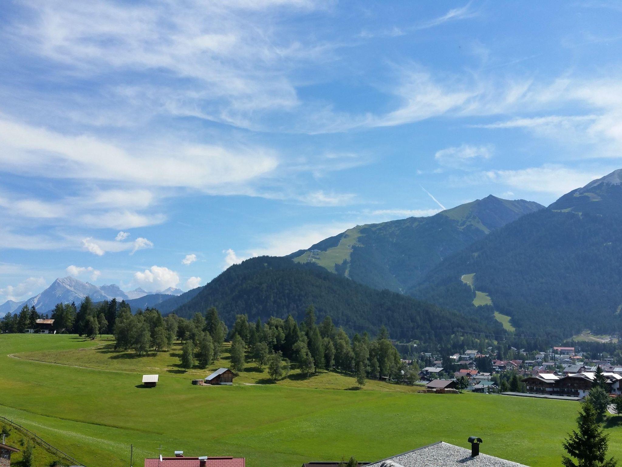 Das Appartement hat eine überdachte Terrasse mit einer Sitzgelegenheit und bietet einen schönen Ausblick über Seefeld und die Berge. Im Sommer können Sie von der Liegewiese Gebrauch machen.