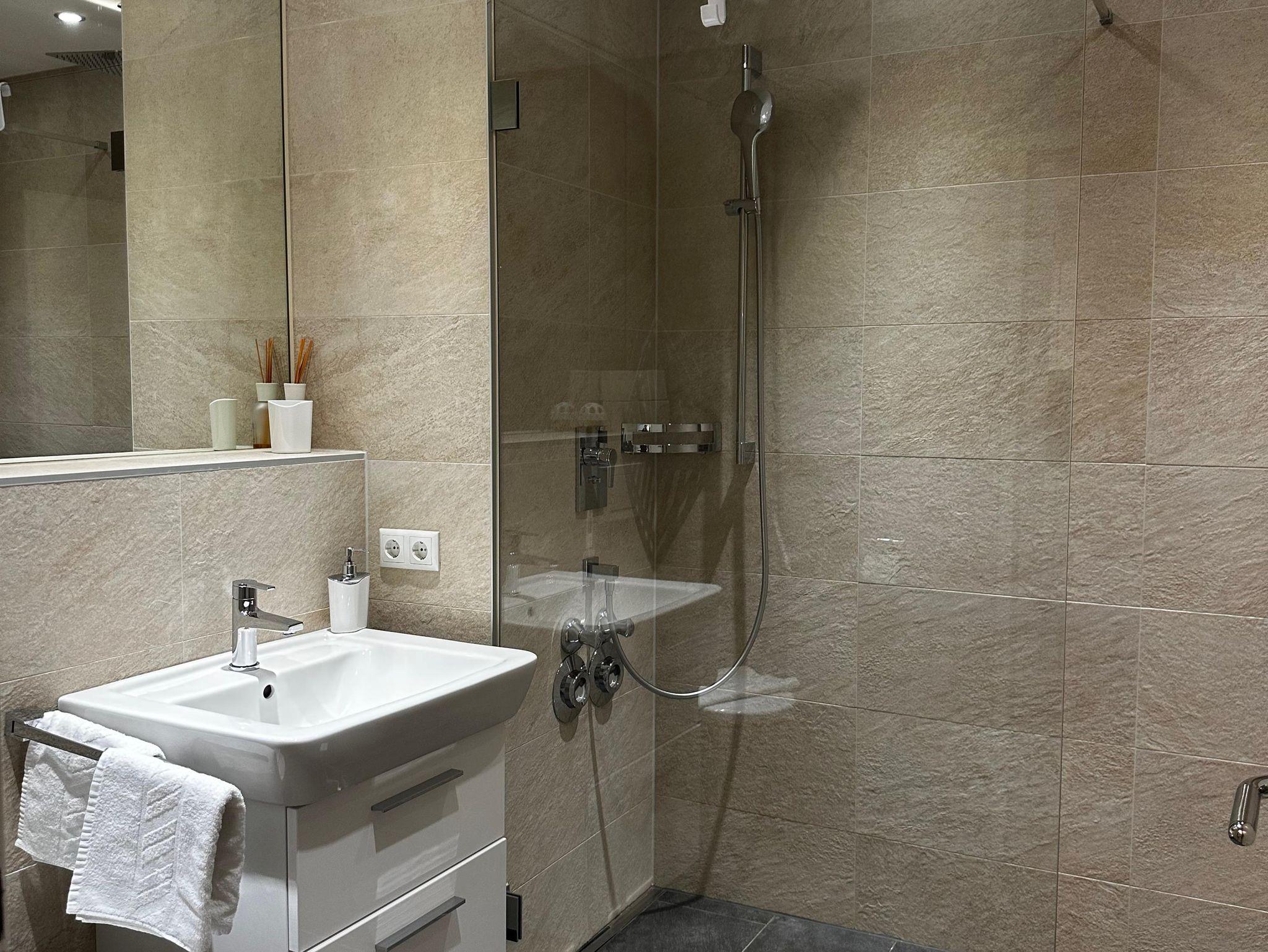 Mit einer Fläche von rund 53 m² bietet das Appartement Platz für bis zu 4 Personen und umfasst ein Wohnzimmer, ein separates Schlafzimmer, eine Küche, ein Badezimmer sowie einen Balkon oder eine Terrasse.