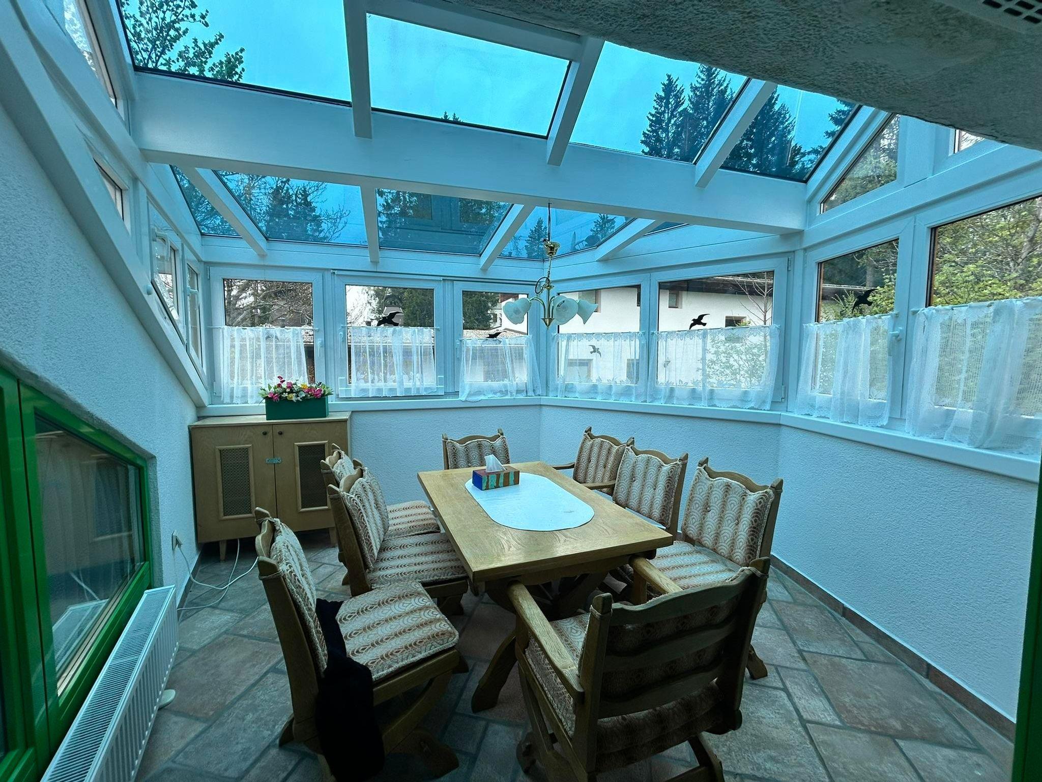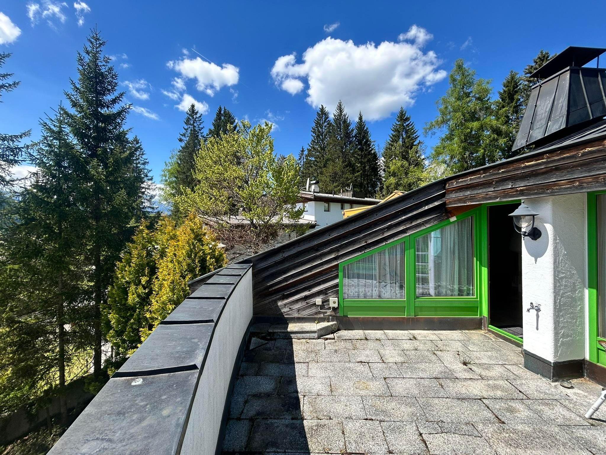 „Die Penthousewohnung im 3. Stock ist bequem über den Lift erreichbar und besticht durch hochwertige Natursteinböden. Ein lichtdurchfluteter Wintergarten und eine gemütliche Sitzecke mit offenem Kamin laden zum Entspannen ein. Die Wohnung verfügt über drei Schlafzimmer und bietet damit viel Platz für komfortables Wohnen in ruhiger Lage mit herrlichem Ausblick auf Seefeld und die umliegenden Berge.“