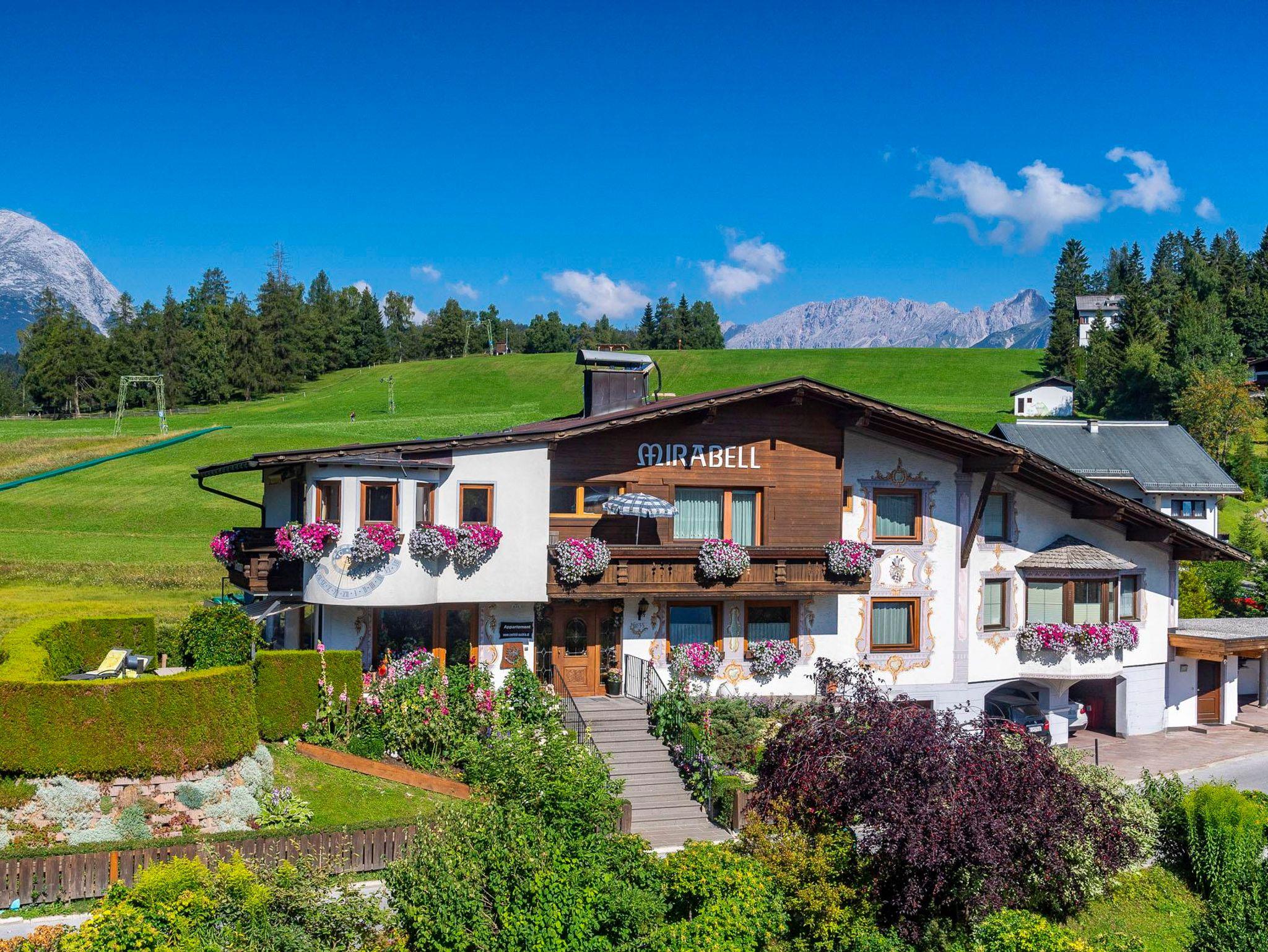 Ein großer, bunter Blumengarten umgibt unser Haus, liebevoll von den Gastgebern gepflegt. Hinter dem Haus lädt eine duftende Blumenwiese zu gemütlichen Spaziergängen auf den Geigenbühel ein, der im Winter als Skipiste genutzt wird. Die optimale Lage ermöglicht es sogar, mit angeschnallten Skiern zum Sammelplatz der Schischule Seefeld oder zum Skilift Geigenbühel zu gelangen.