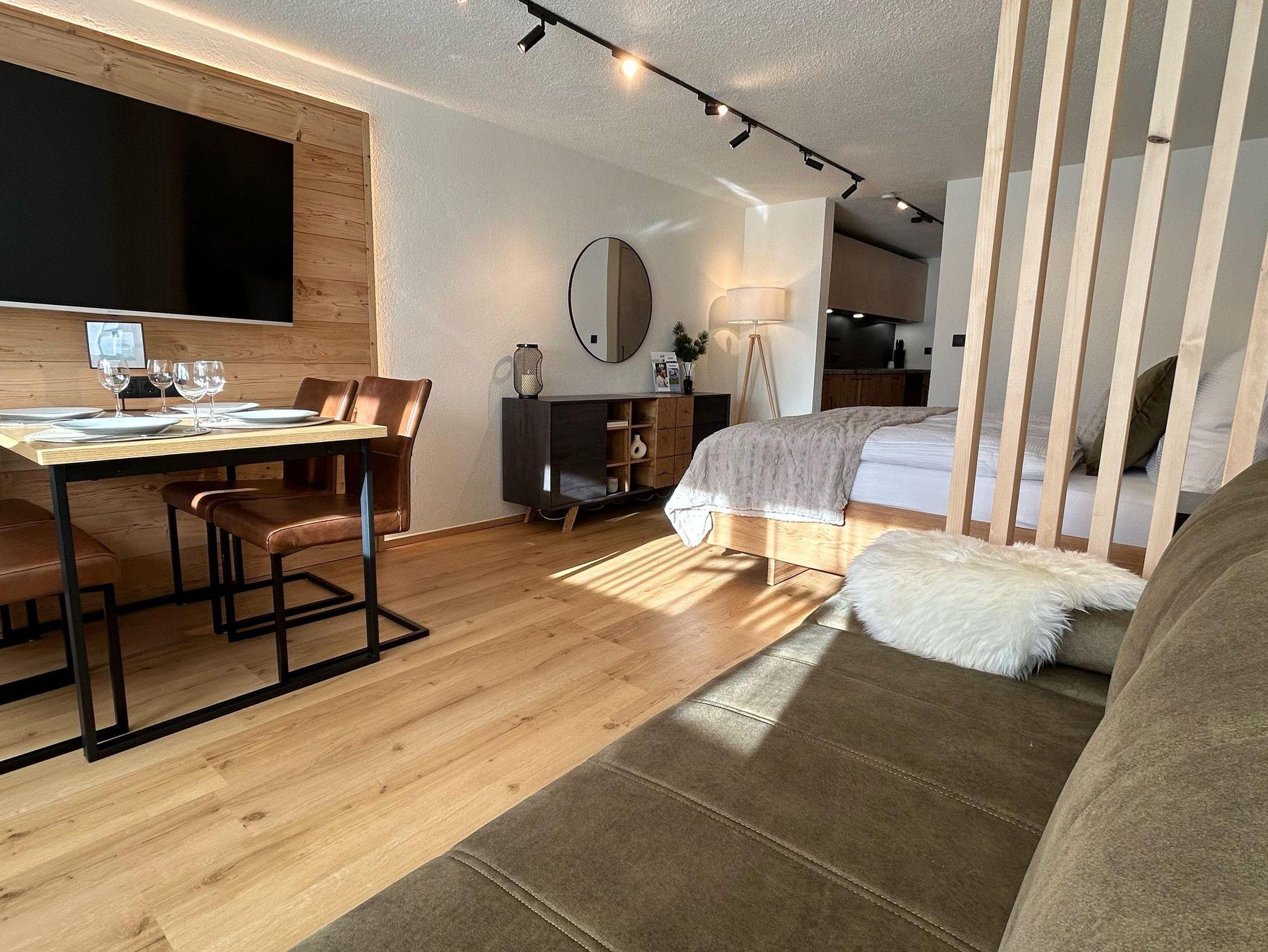 Das 35 m² große Apartment Waldnest vereint alpinen Charme mit modernem Komfort. Es verfügt über einen gemütlichen Wohn- und Schlafbereich, eine voll ausgestattete Küche und ein modernes Bad. Flachbild-TV und WLAN sorgen für Unterhaltung.
