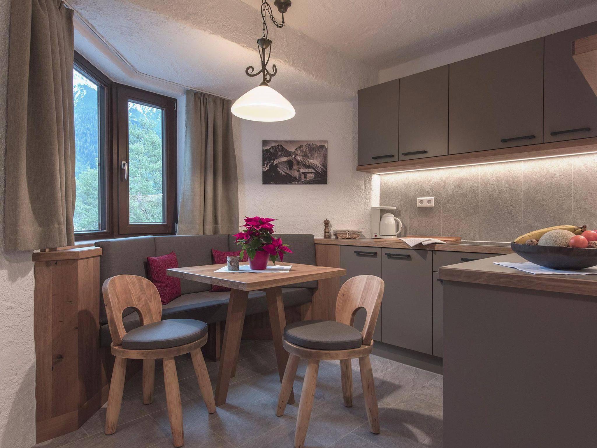 Neue sehr schöne im Chaletstil renovierte 2-Raum-Ferienwohnung für 2-3 Personen. Sichtbarer Holzdachstuhl, Holz- und Schieferboden, kleiner Erker. Schlafzimmer mit Doppelbett (Boxspringbett) und Zusatzbett. Voll ausgestattete Küche, Bettwäsche, Bade- Hand- und Geschirrtücher, Haarföhn, Kabel-TV, TV-Programm, Radio, gratis W-LAN. Das Appartement ist sehr ruhig gelegen mit Balkon und einem traumhaften Ausblick in die Berge und über den Seefelder Wildsee mit all seinen faszinierenden Jahreszeiten.
