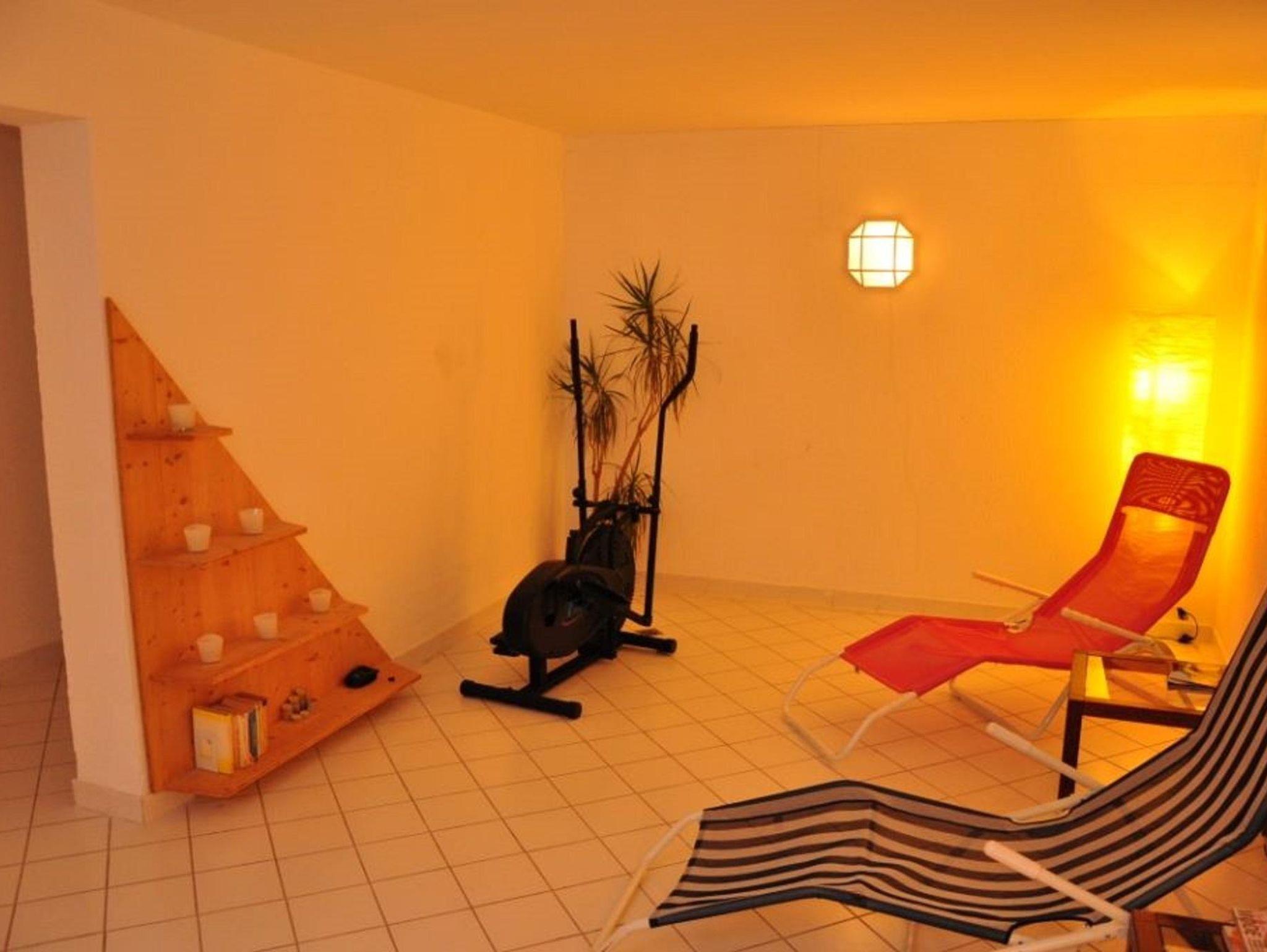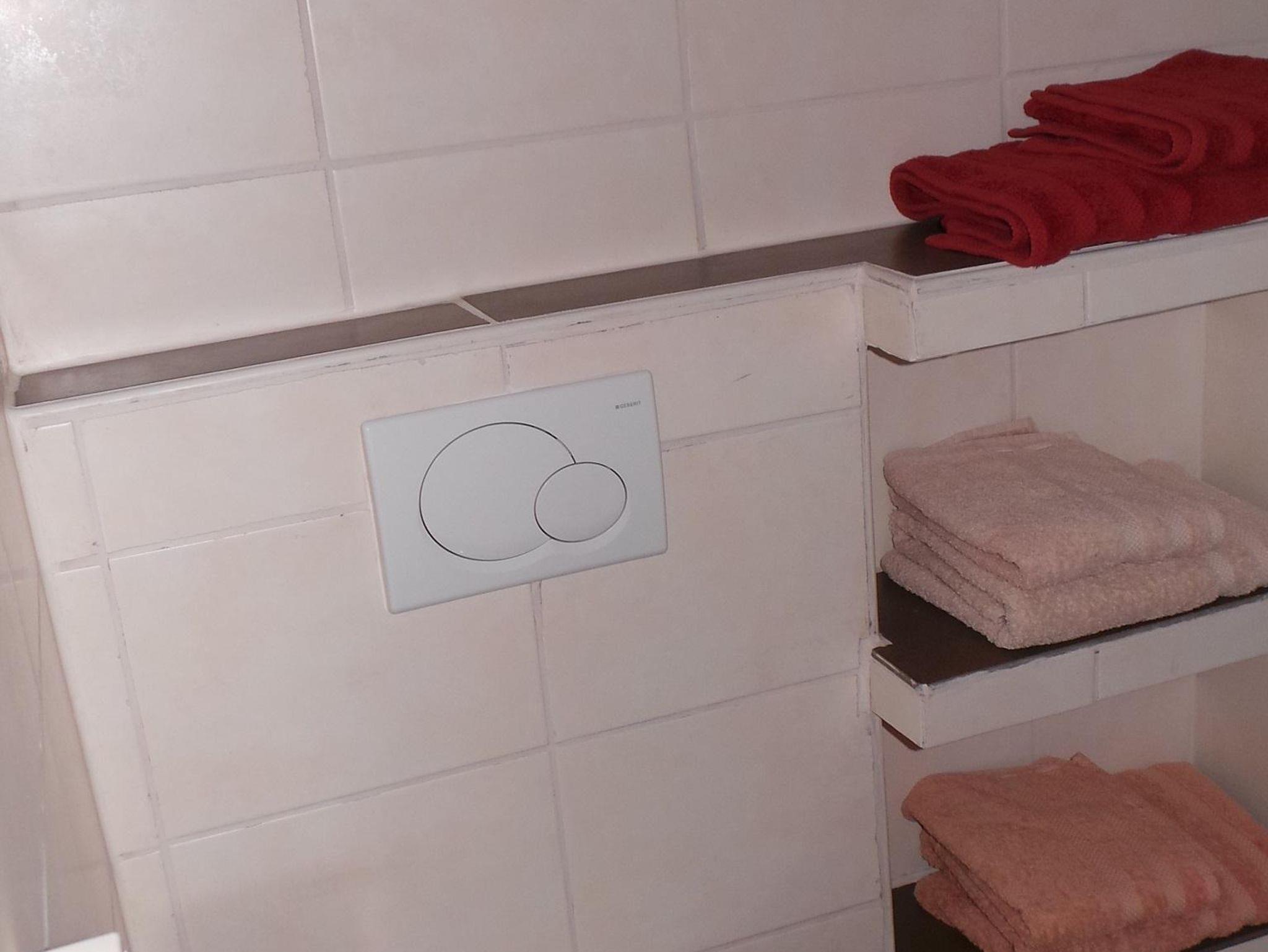 Das Apartment (55m²) im Erdgeschoß, besteht aus einem Eingangsbereich, einem Schlafzimmer mit einem Doppelbett und einem Stockbett, einem Wohnzimmer mit einem Schlafsofa, Esstisch, Kabelfernseher und W-LAN. Die neue separate Küche ist mit einer Spülmaschine, Ceranfeld, Backofen, Kühlschrank mit Gefrierfach ausgestattet. Das Badezimmer hat eine Badewanne mit Duschwand. Durch die Glasfront gelangen Sie direkt auf die Terrasse.