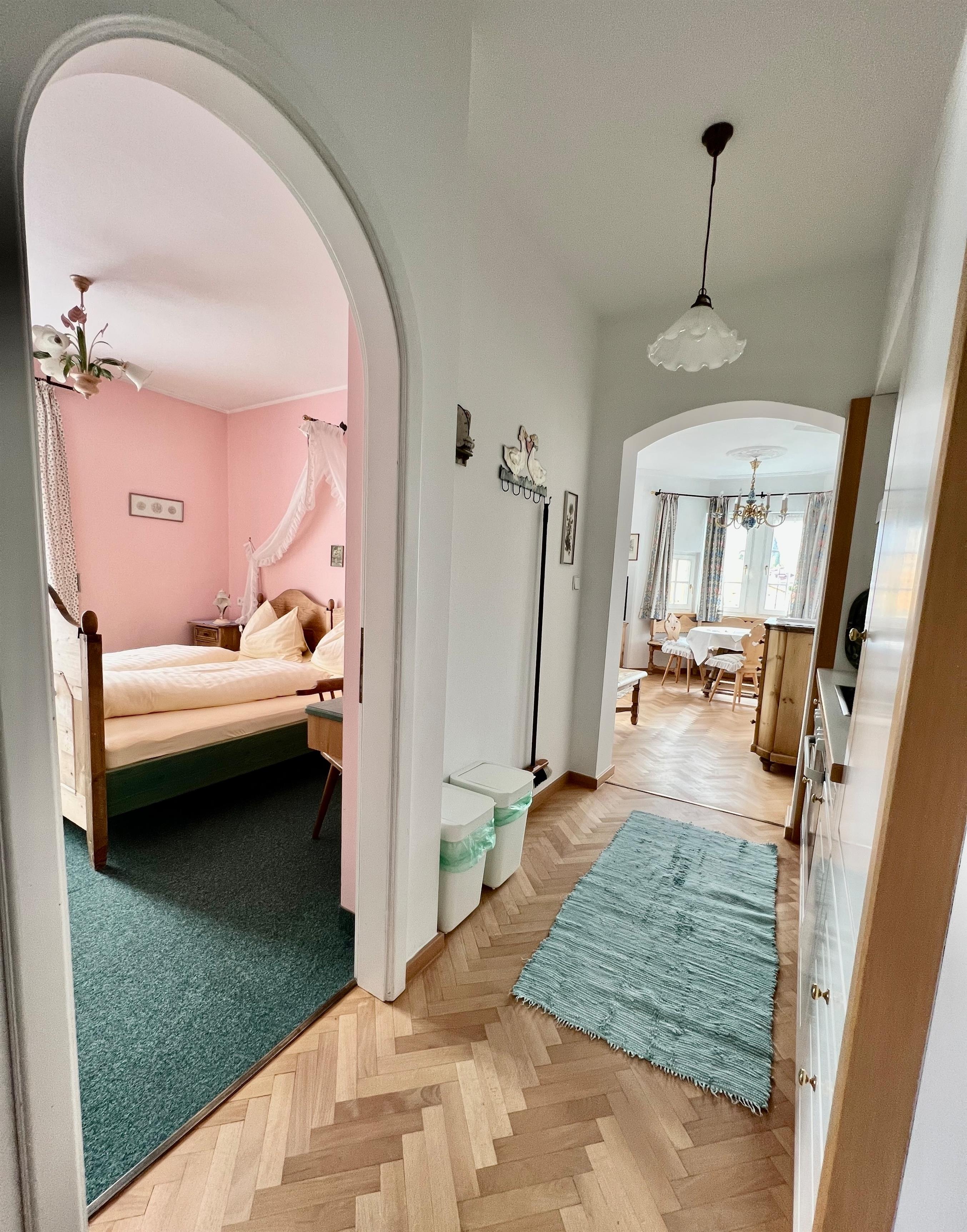 Beide Ferienwohnungen sind im ursprünglichen Stil erhalten und verfügen über Balkon, lichtdurchflutete Wohnzimmer mit Sofa bzw. Doppel-Schlafcouch, Schlafzimmer und Marmorbad sowie voll ausgestatteter Kochzeile. Die original Kachelöfen wurden jeweils erhalten, sind nun zusätzlich elektrisch bedienbar und sorgen für ein besonders gemütliches Wohnklima. High Speed WLAN steht im ganzen Haus zur Verfügung, unsere TV Geräte sind NETFLIX, APPLE TV, AMAZON... etc. tauglich.