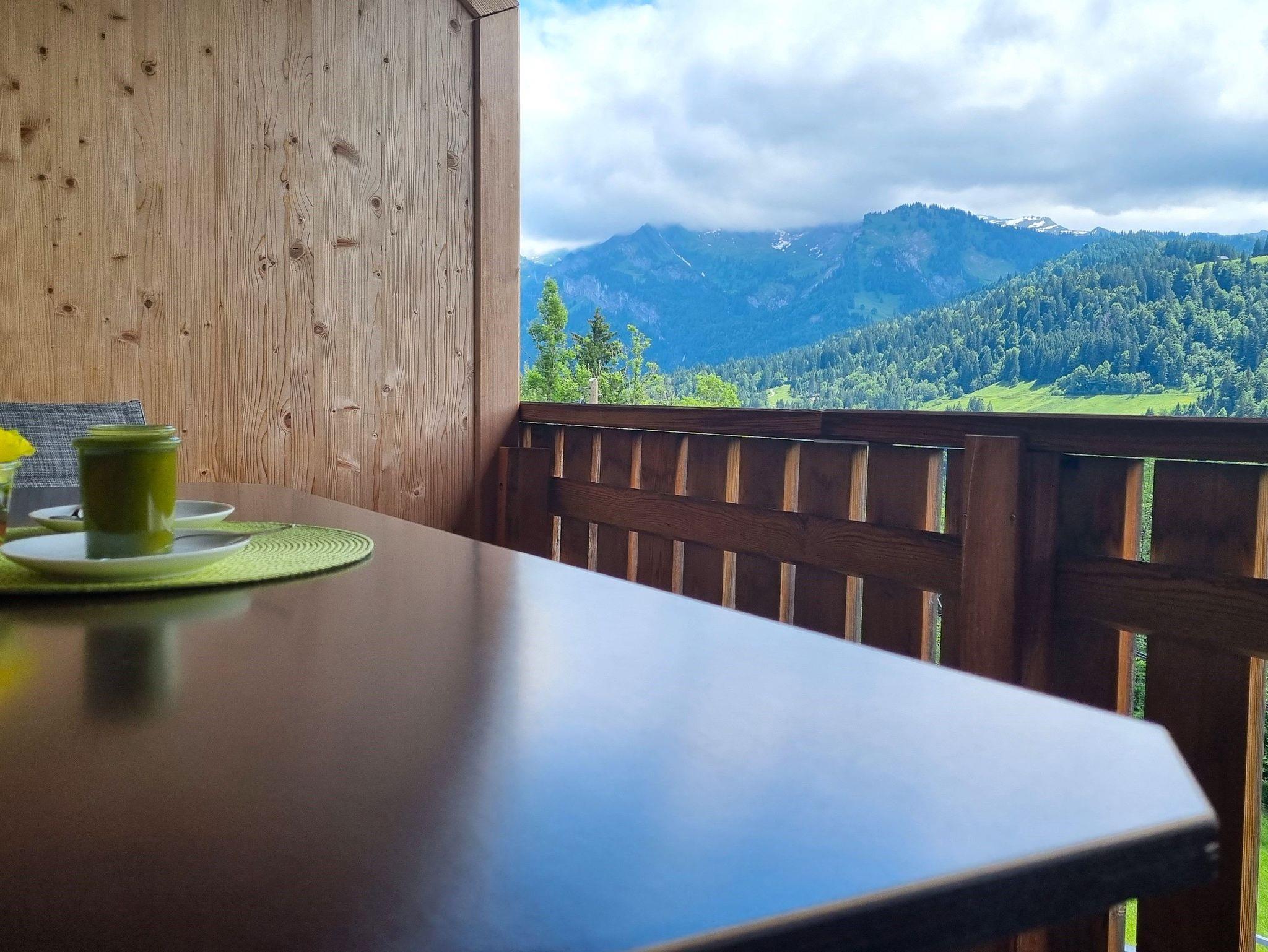 Ferienwohnung Alpenblick mit Blick auf die Bergkulisse und Alpen