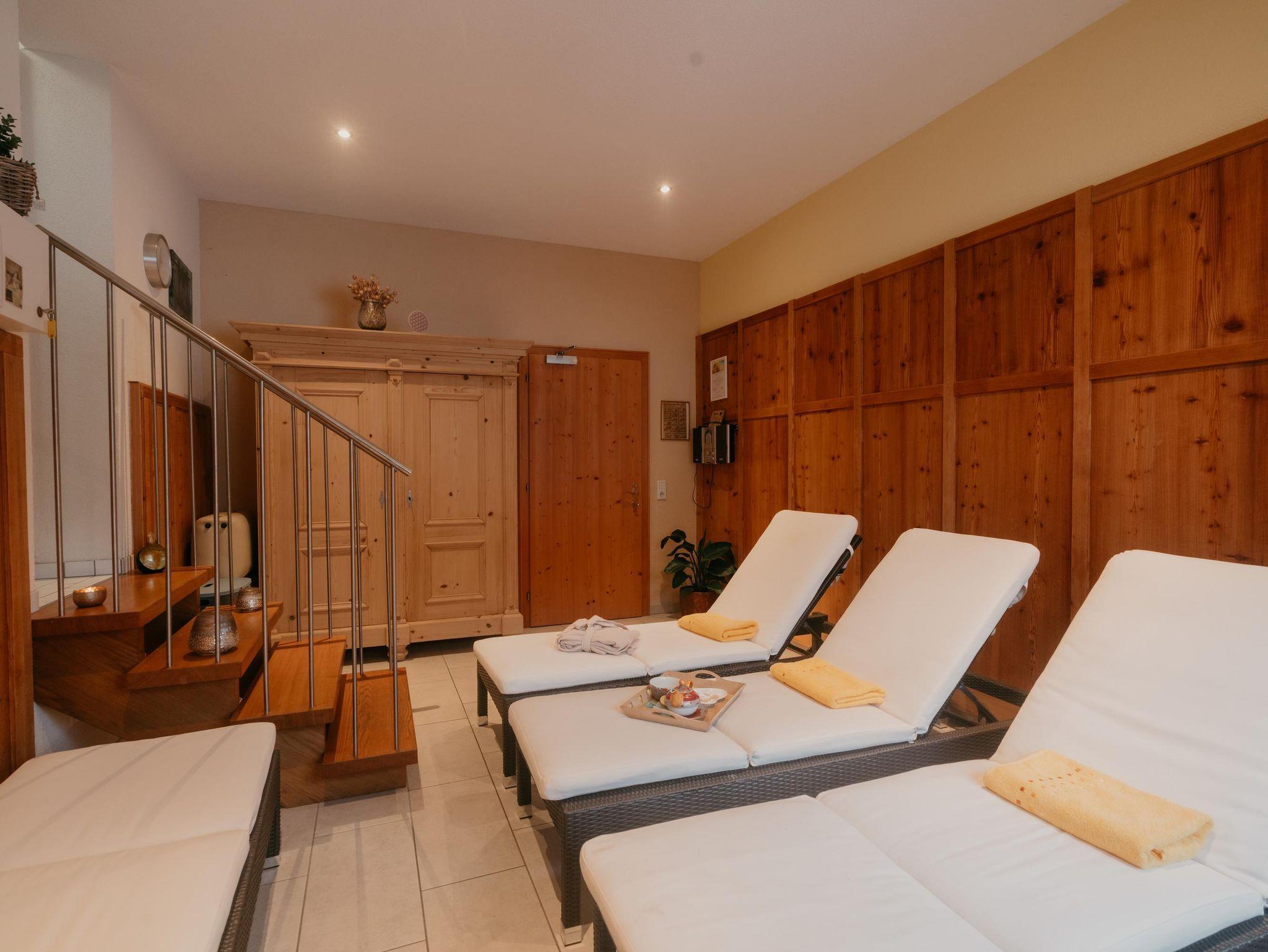 Sauna oder Kräuterdampfbad, Ruheraum.