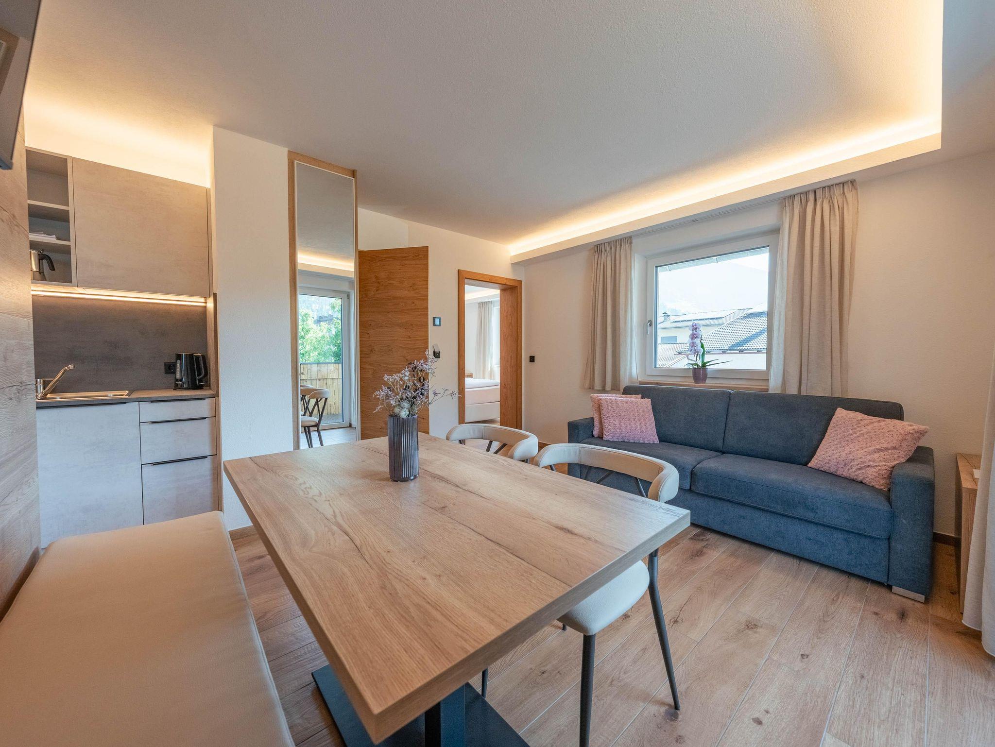 Appartement mit 1 Schlafzimmer mit Doppelbett, 1 Wohnküche mit ausziehbarer Couch für 2 Personen und 1 Dusche / WC