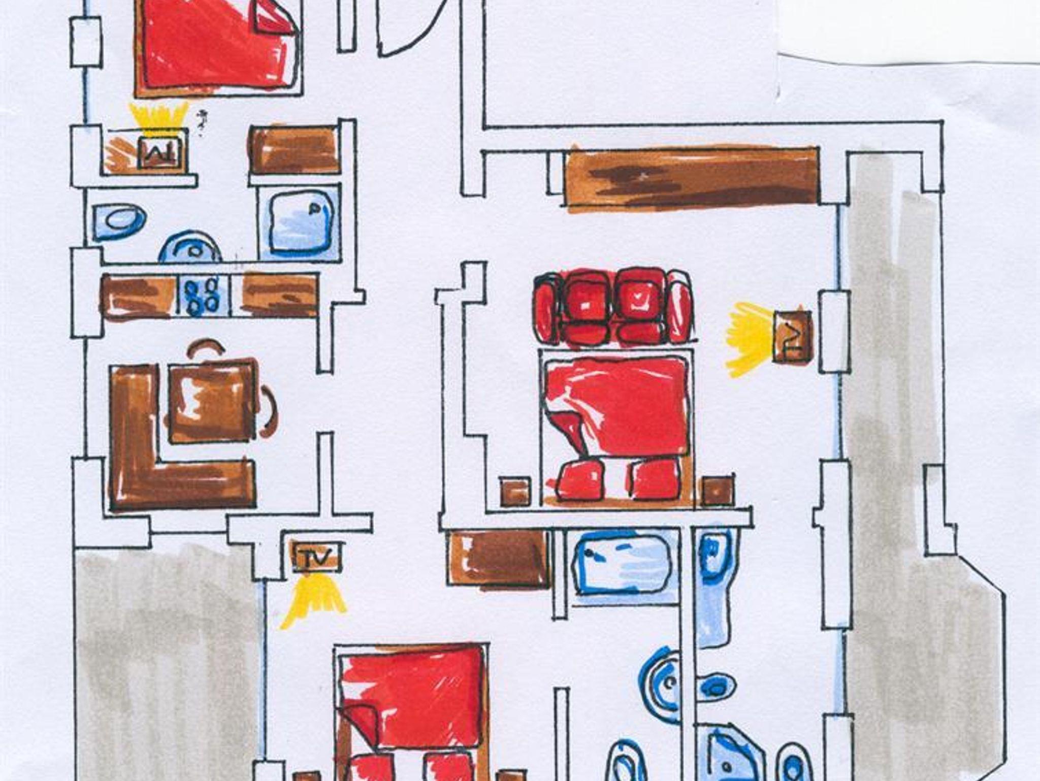Das Appartement besteht aus 3 Doppelzimmern(ein Zimmer 3-bettig möglich). Jedes Zimmer hat eine eigene Dusche,WC, Flachbild-Sat-TV, kostenfreies W-Lan, Balkon. Küche mit Ceranfeld, Backrohr, Mikrowelle, Geschirrspüler, Kühlschrank mit Gefrierfach