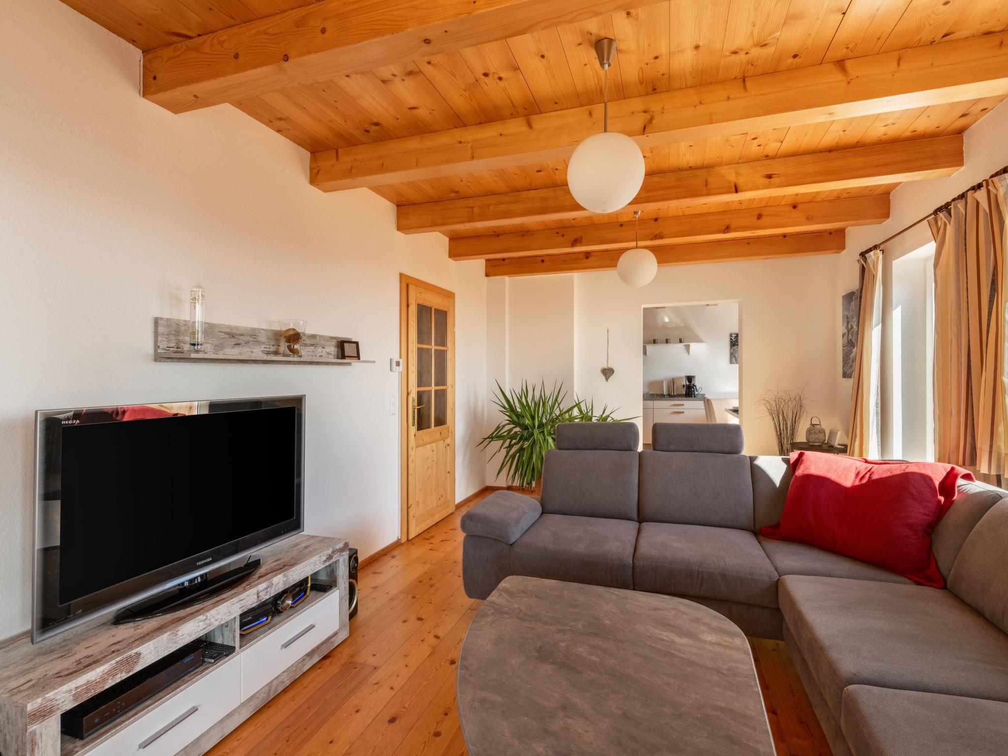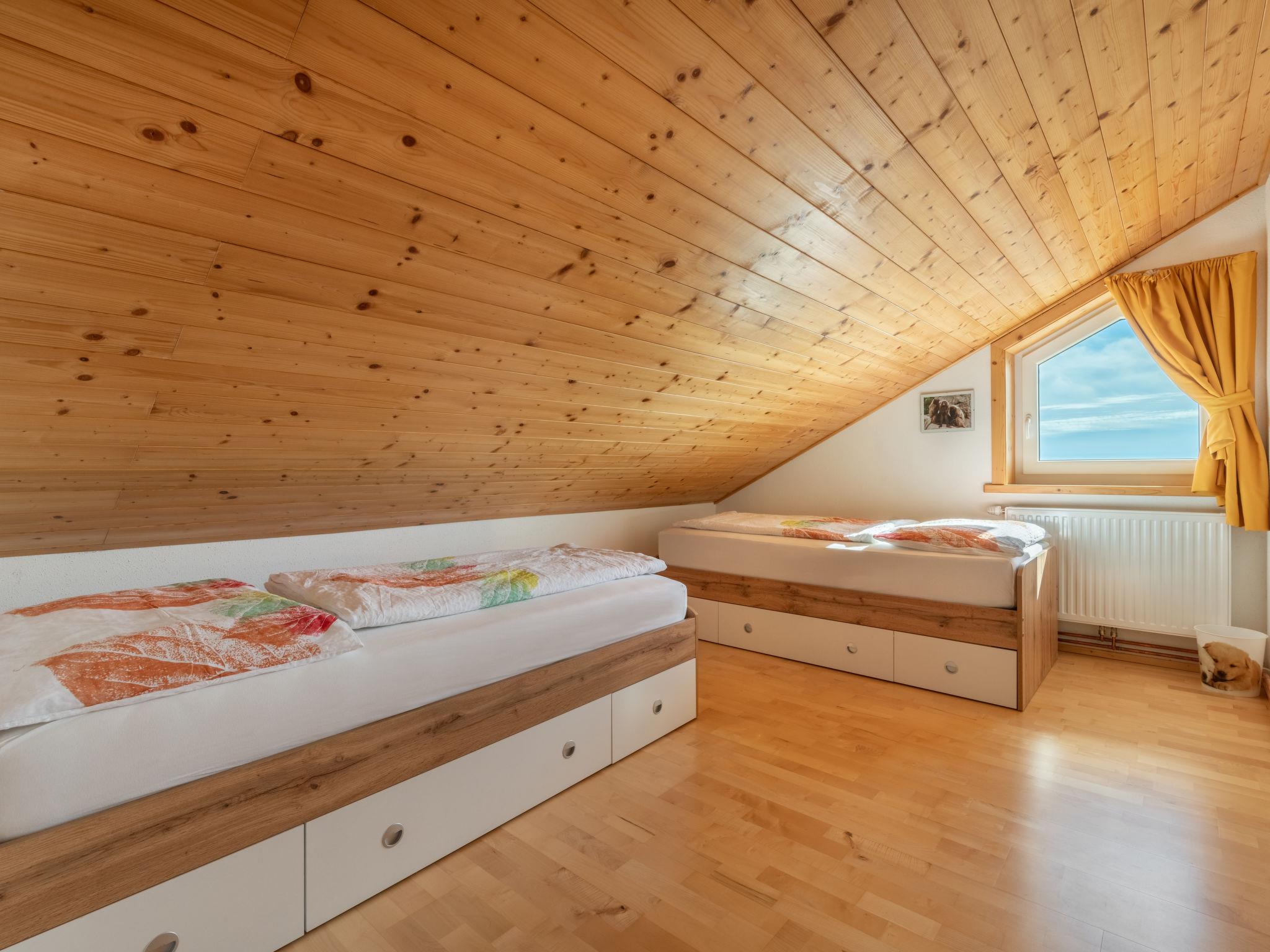 "Pistenblick Gross", 4-room apartment 120 m2 on 2 levels. Spacious, partly with sloping ceilings, comfortable furnishings: entrance hall. Living room with winter garden with satellite TV. Exit to the balcony. 1 room with 1 double bed (2 x 90 cm, length 200 cm). Kitchen (oven, dishwasher, 4 ceramic glass hob hotplates, microwave, freezer) with dining table. Shower, sep. WC. Upper floor: (spiral staircase) walk-through room with 1 double bed (140 cm, length 200 cm). 1 open room with 2 beds (90 cm, length 200 cm). 1 room with 1 x 2 bunk beds (90 cm, length 200 cm), 1 double bed (180 cm, length 200 cm). Bathroom, sep. WC. Large patio. Terrace furniture. Beautiful panoramic view of the mountains and the valley. Facilities: Internet (WiFi, free). Parking at the house. Please note: suitable for families. Non-smokers only. Smoke alarm.