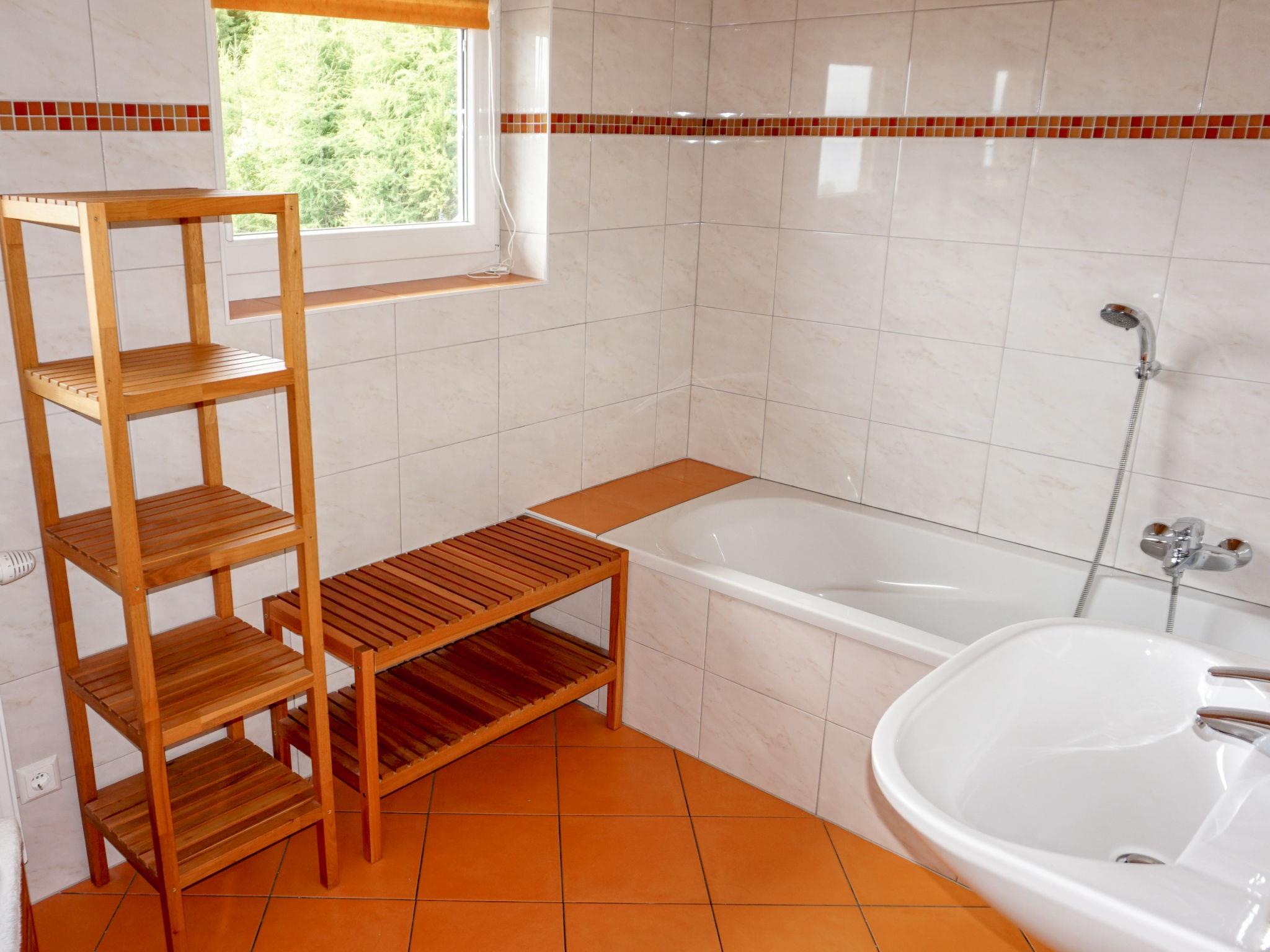 "Pistenblick", 6-room house 180 m2 on 3rd floor. Spacious, partly with sloping ceilings, comfortable furnishings: entrance hall. Living room with winter garden. Exit to the balcony. 1 double bedroom. Kitchen (oven, dishwasher, 4 ceramic glass hob hotplates, microwave, freezer) with dining table. Shower, sep. WC. On the lower ground floor: (exterior staircase) entrance hall. 1 room with 1 double bed (140 cm, length 200 cm). Living/sleeping room with 1 double sofabed and satellite TV. Kitchen (dishwasher, 4 ceramic glass hob hotplates) with dining table. Bath/WC. Upper floor: (spiral staircase) walk-through room with 1 double bed (140 cm, length 200 cm). Open, 1 double bedroom with 2 beds (90 cm, length 200 cm). 1 room with 1 x 2 bunk beds (90 cm, length 200 cm), 1 double bed (180 cm, length 200 cm). Bathroom, sep. WC. Large patio. Terrace furniture. Beautiful view of the mountains and the valley. Facilities: Internet (WiFi, free). Parking at the house. Please note: suitable for families. Non-smokers only. The main floor/upper floor are not connected to the ground floor and can only be reached via the external staircase. The house consists of two completely separate units.