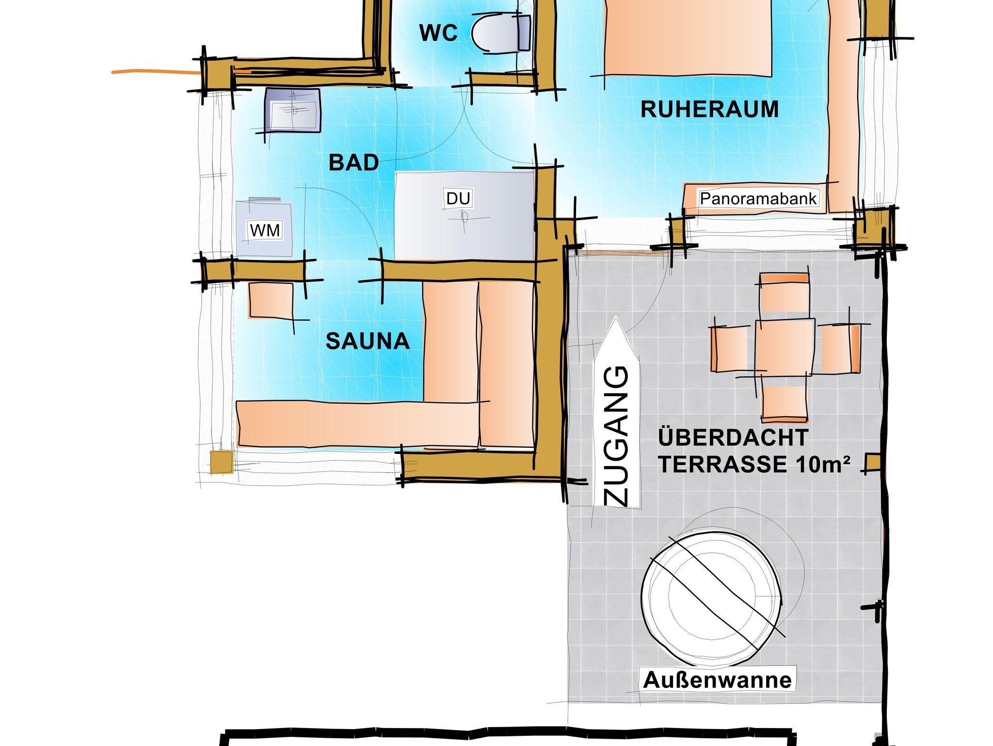 1, Die urige HIASLHÜTTE wurde renoviert und mit Nahwärme/Zentralheizung und Strom ausgestattet. Im Erdgeschoß befindet sich eine Wohnküche, ein Doppelzimmer sowie die Dusche, WC. Im 1. Stock gibt es ein Balkon-Dreibettzimmer, ein Doppelzimmer mit Zusatzbett und Gitterbett, 1 WC