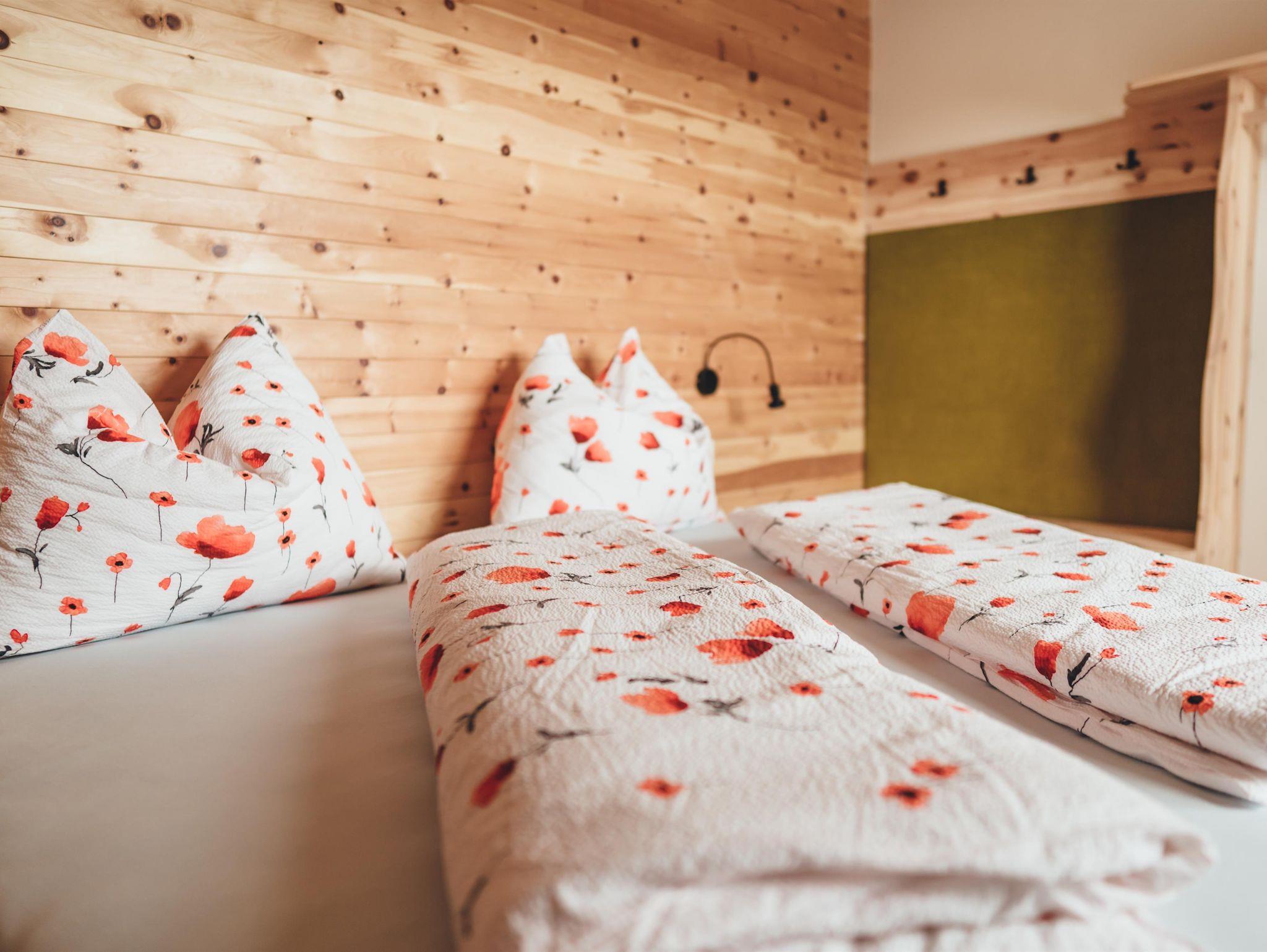 Zirben – Schlafzimmer Nr. 1 mit Doppelbett, Kinderbett;