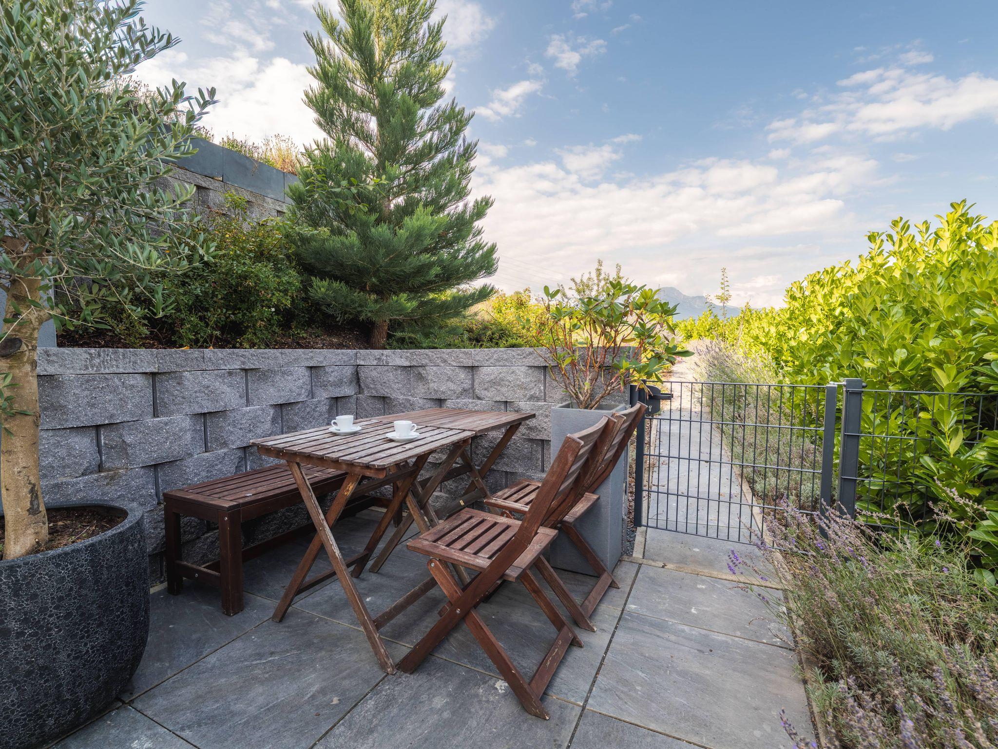 Die sonnige Terrasse (neu) bietet einen wundervollen Blick auf die umliegende Bergkette. Vor allem in den Abendstunden gibt es nichts schöneres, als der untergehenden Sonne bei einem Gläschen Wein zuzuschauen.