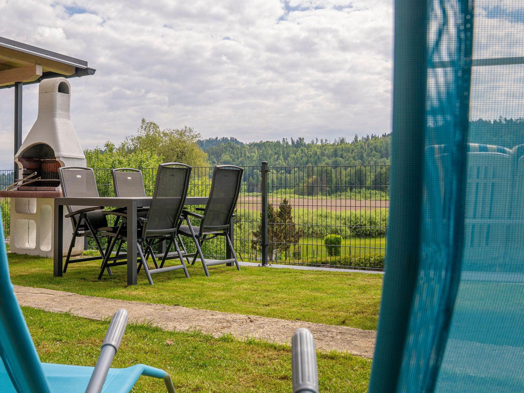 • Im Garten gibt es einen Sitzplatz mit Tisch, Stühlen, Grill, Hollywoodschaukel und wunderschönem Seeblick