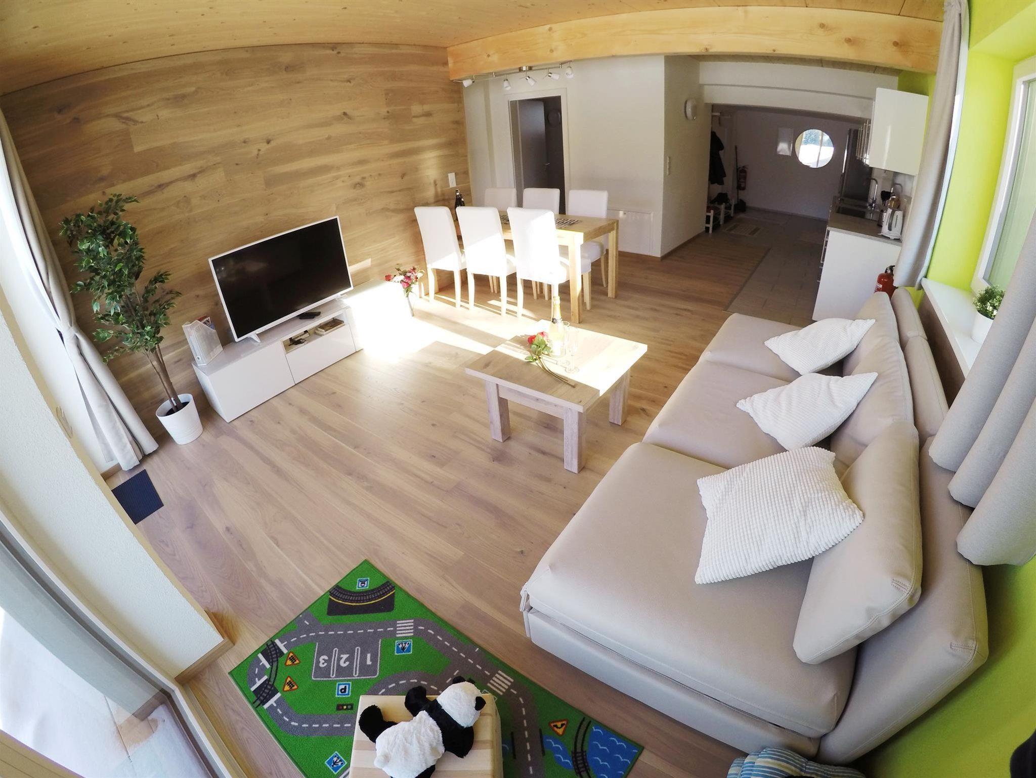 Das neu renovierte und moderne Appartement ist voll ausgestattet und hat eine Größe von 56 m². Den 360° Panorama-Bergblick können Sie sowohl vom Garten als auch vom Balkon aus genießen. Das Schlafzimmer, das Wohnzimmer, die Küche mit Sitzecke sowie der Garten und der Balkon lassen Sie sich wie zu Hause fühlen, weit weg von zu Hause. Ein Kinderspielplatz ist vorhanden!