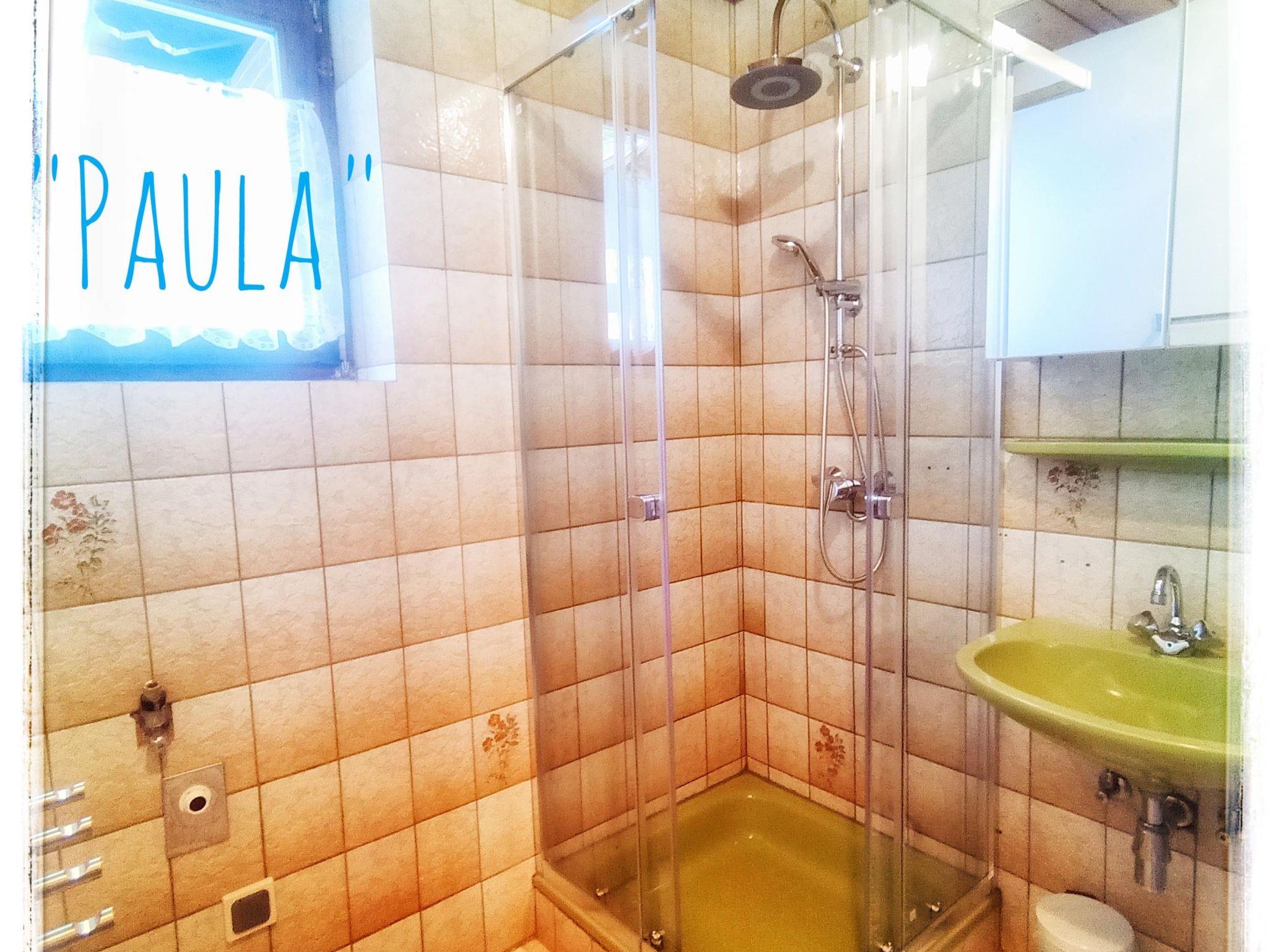 Das Appartement Paula befindet sich ebenerdig zum Haupteingang und verfügt über zwei liebevoll eingerichtete Schlafzimmer, einem Bad mit Dusche, separatem WC, eine voll ausgestattete Küche mit Geschirrspüler und Backrohr sowie einem gemütlichen Wohnzimmer mit Essbereich. Im Gemeinschaftsgarten finden sich viele Sitzgelegenheiten und ausreichend Platz für spielende Kinder.