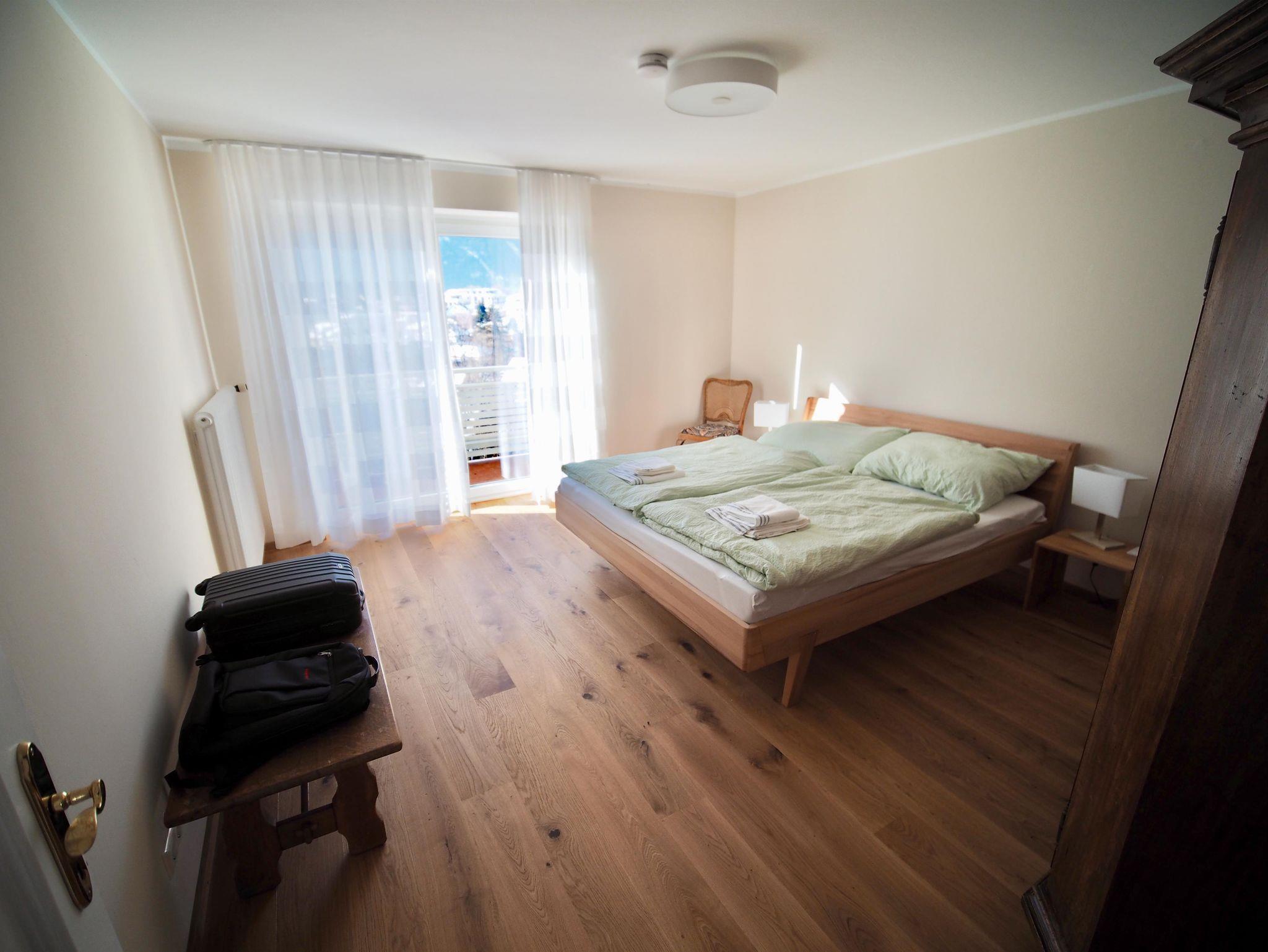 Unser Haus bietet nach dem Umbau bis zu 10 Gästen in fünf Schlafzimmern Platz. Vier Schlafzimmer sind im oberen Stockwerk, eines im Erdgeschoß. Neben den drei grossen Schlafzimmern an der Südseite (23, 17 und 18 m²) mit Doppelbetten (180x200cm), gibt es in beiden Etagen ein kleineres Schlafzimmer (10 m²) mit jeweils einem 140cm breiten Bett.