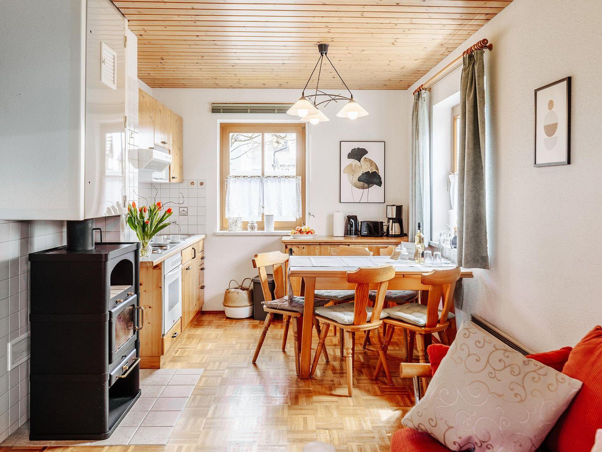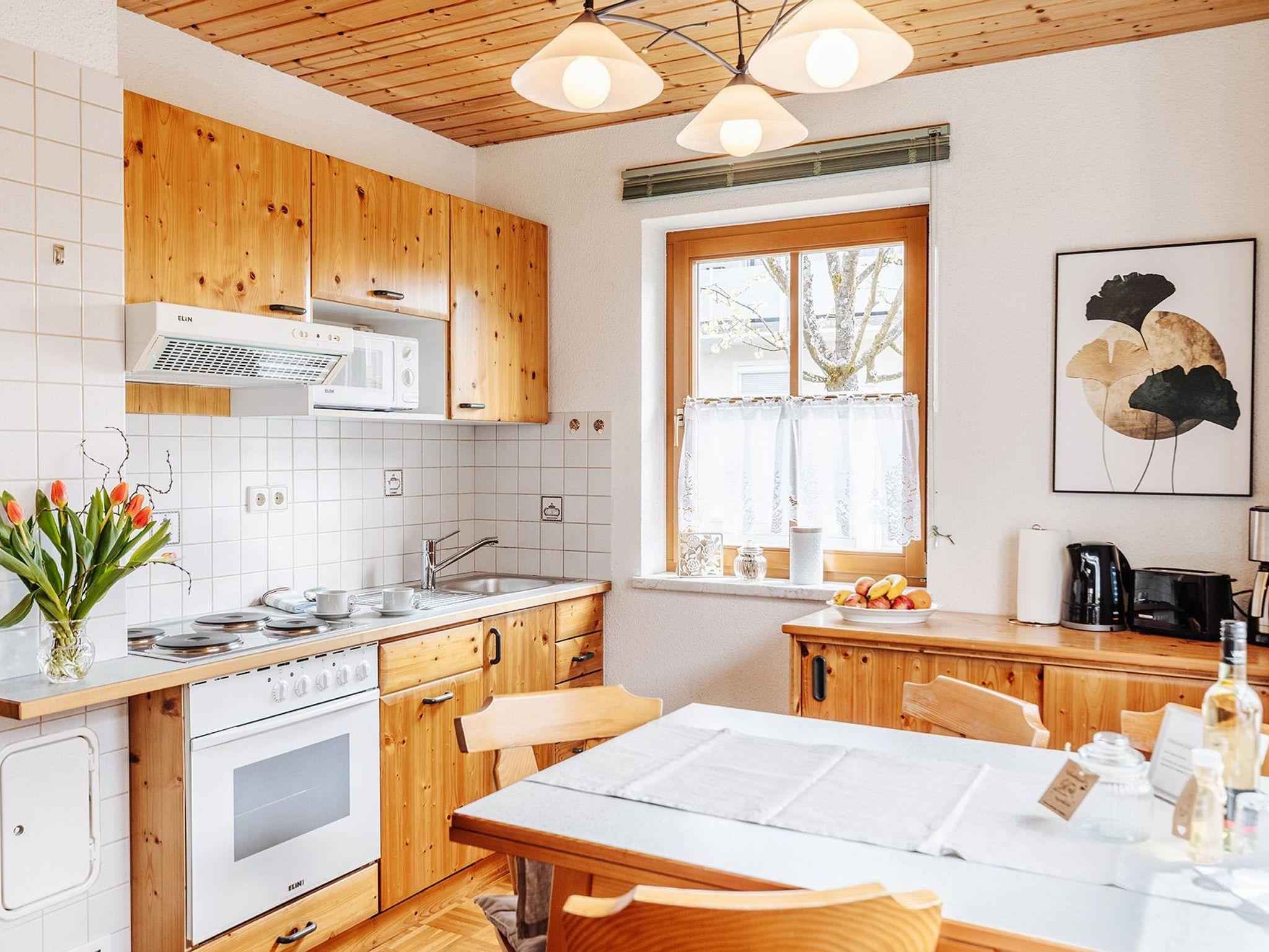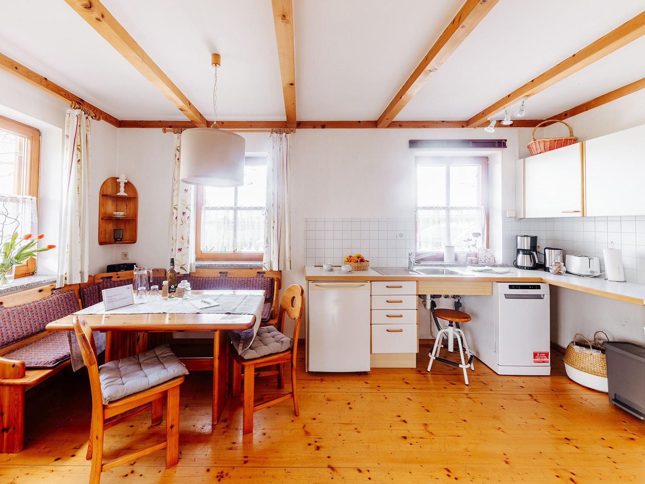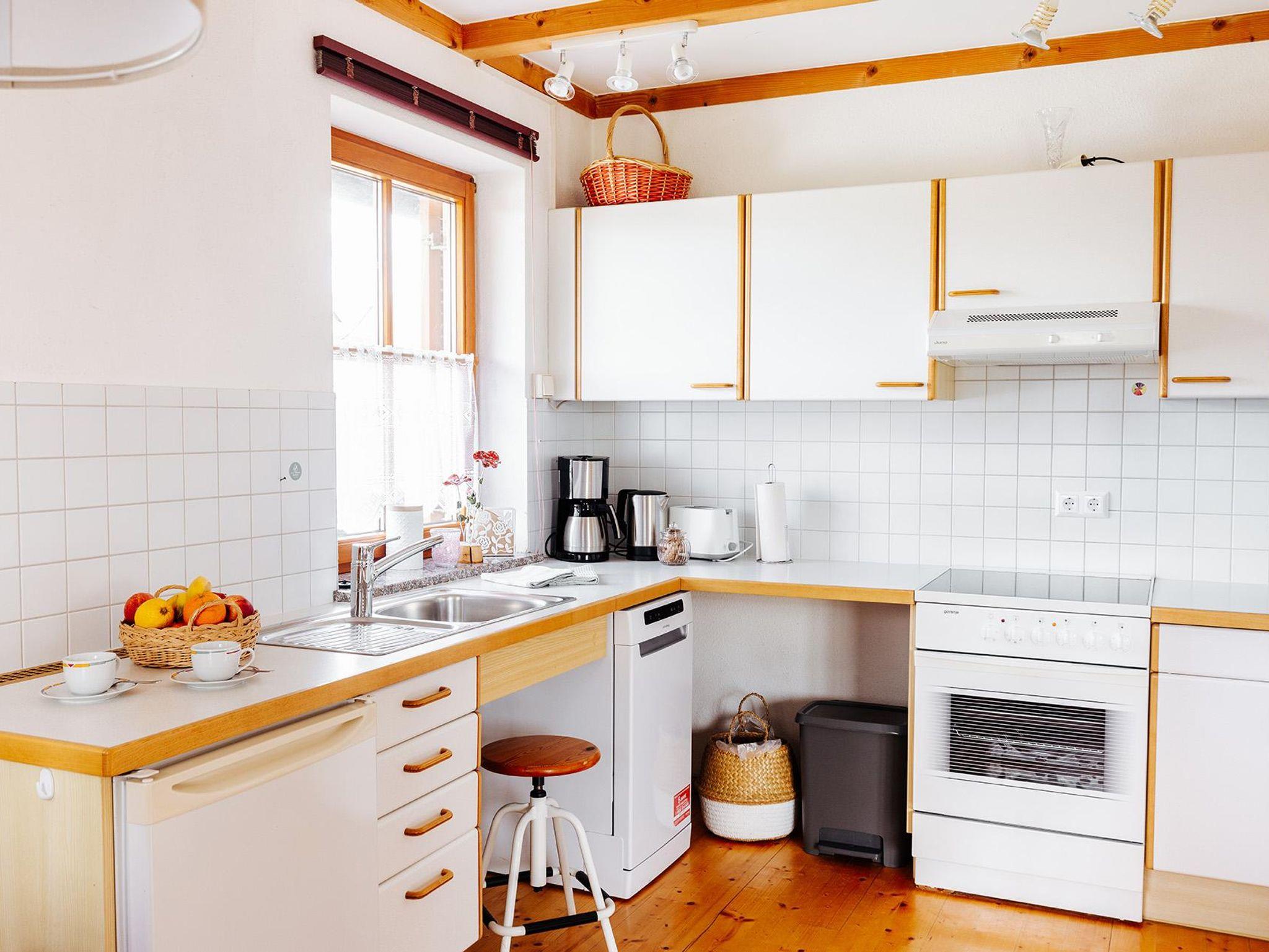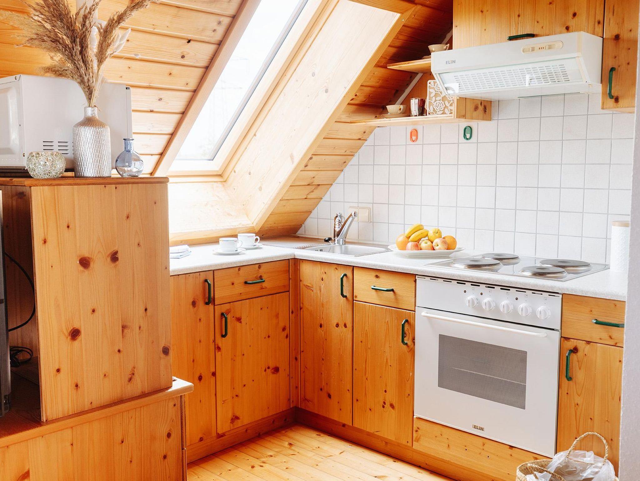 • Küche voll mit Kochfeld - Backrohr - Mikrowelle - Kühlschrank - Spüle - voll ausgestattet mit Besteck & Geschirr - Filterkaffeemaschine - Wasserkocher –Geschirrtücher