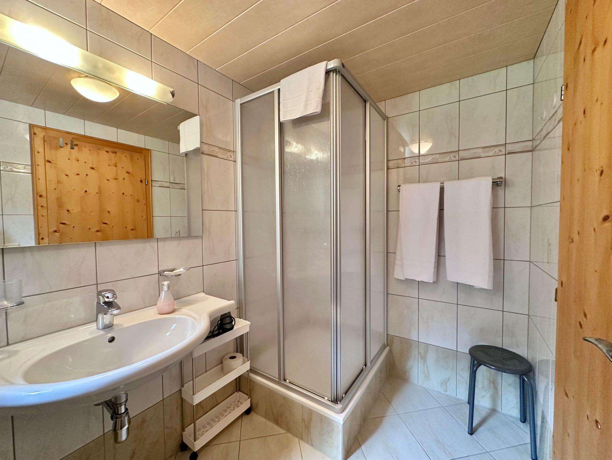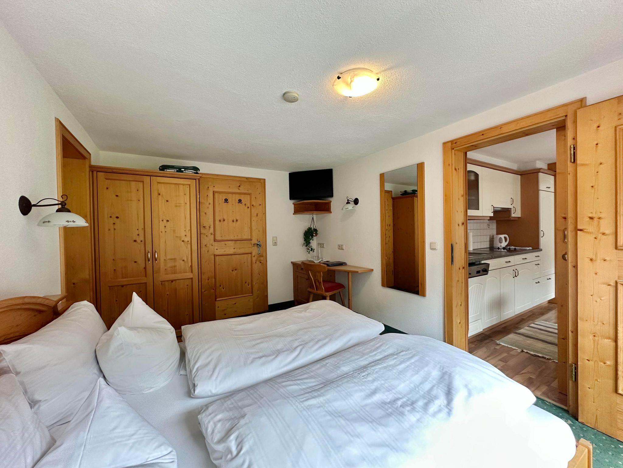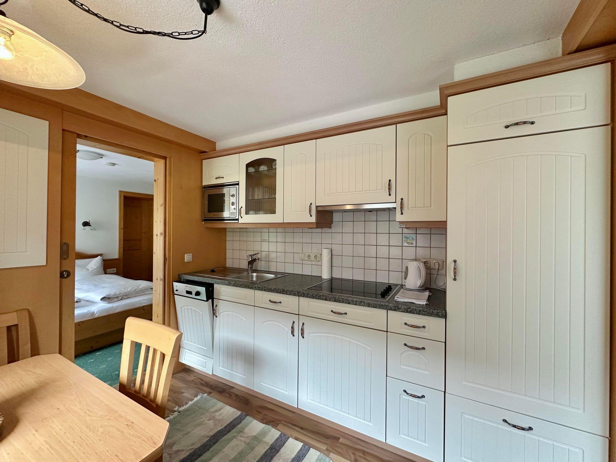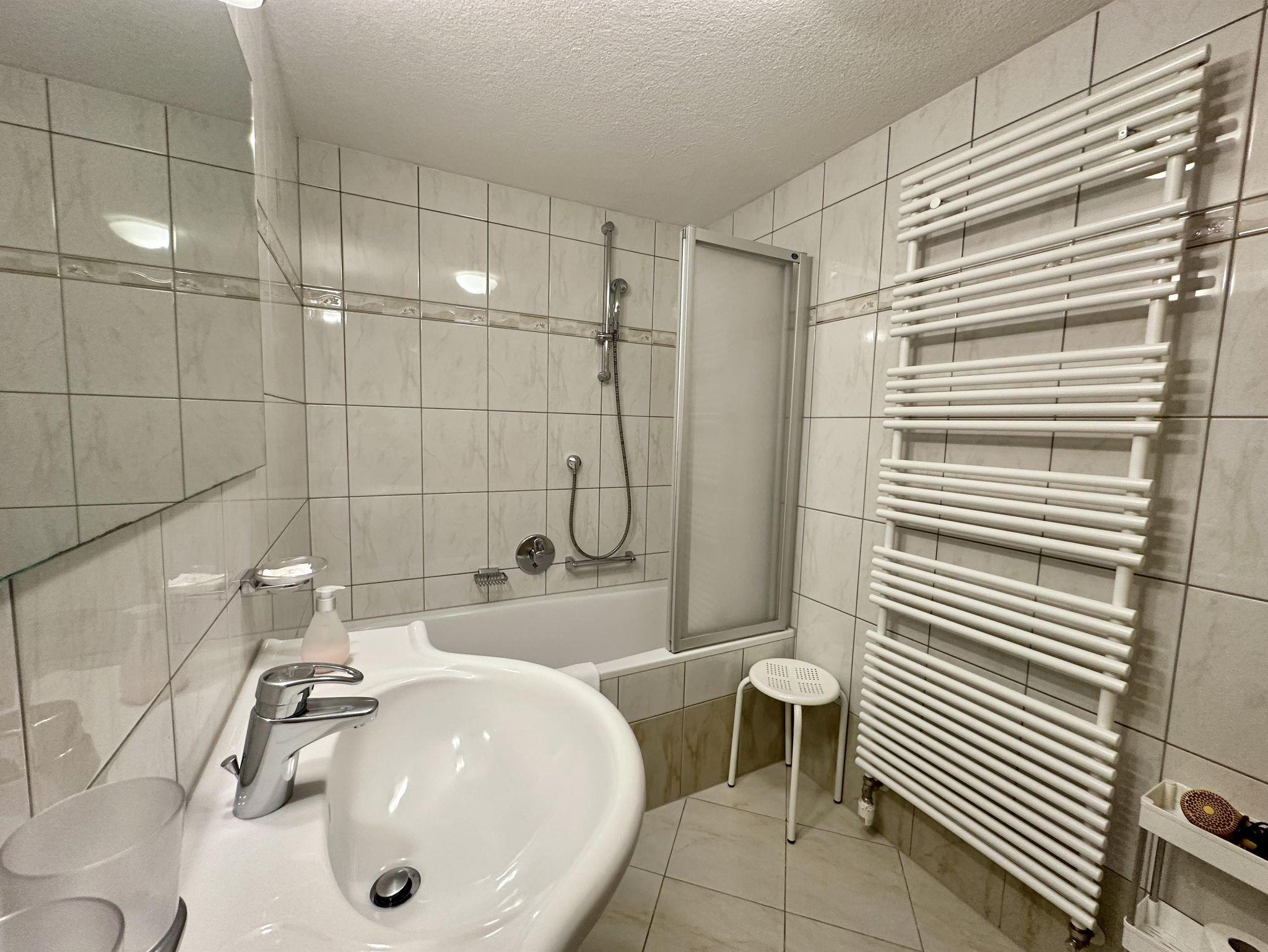 Ausgestattet mit 2 Doppelzimmern mit Doppelbett. Die komplett eingerichteten Wohnküche (Kaffeemaschine, Wasserkocher, Geschirrspülmaschine, Minibackofen, Mikro) mit Sitzgelegenheit für 4 Personen und je ein privates Bad mit einmal Badewanne/WC einmal DU/WC, HD - Flatscreen-TV, Radio, Telefon, Haartrockner und Südbalkon mit grandioser Aussicht auf die Bergwelt. Auch hier sehen Sie den Wintersportlern zu!
