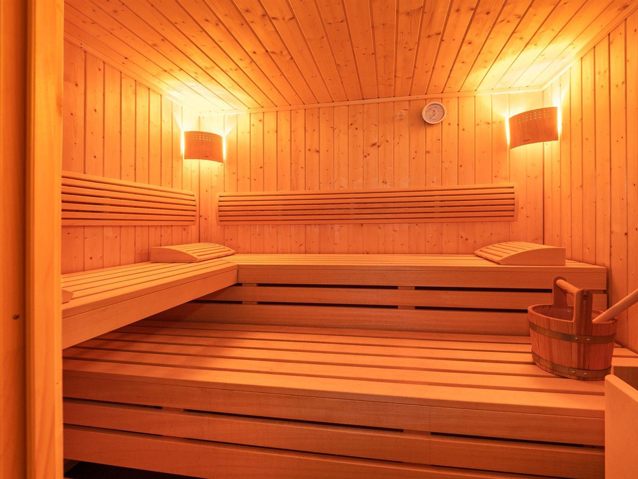 Nach einem erlebnisreichen Tag sorgt die Sauna, die mit dem Rubrum Chalet geteilt wird, für Entspannung und Wohlbefinden.