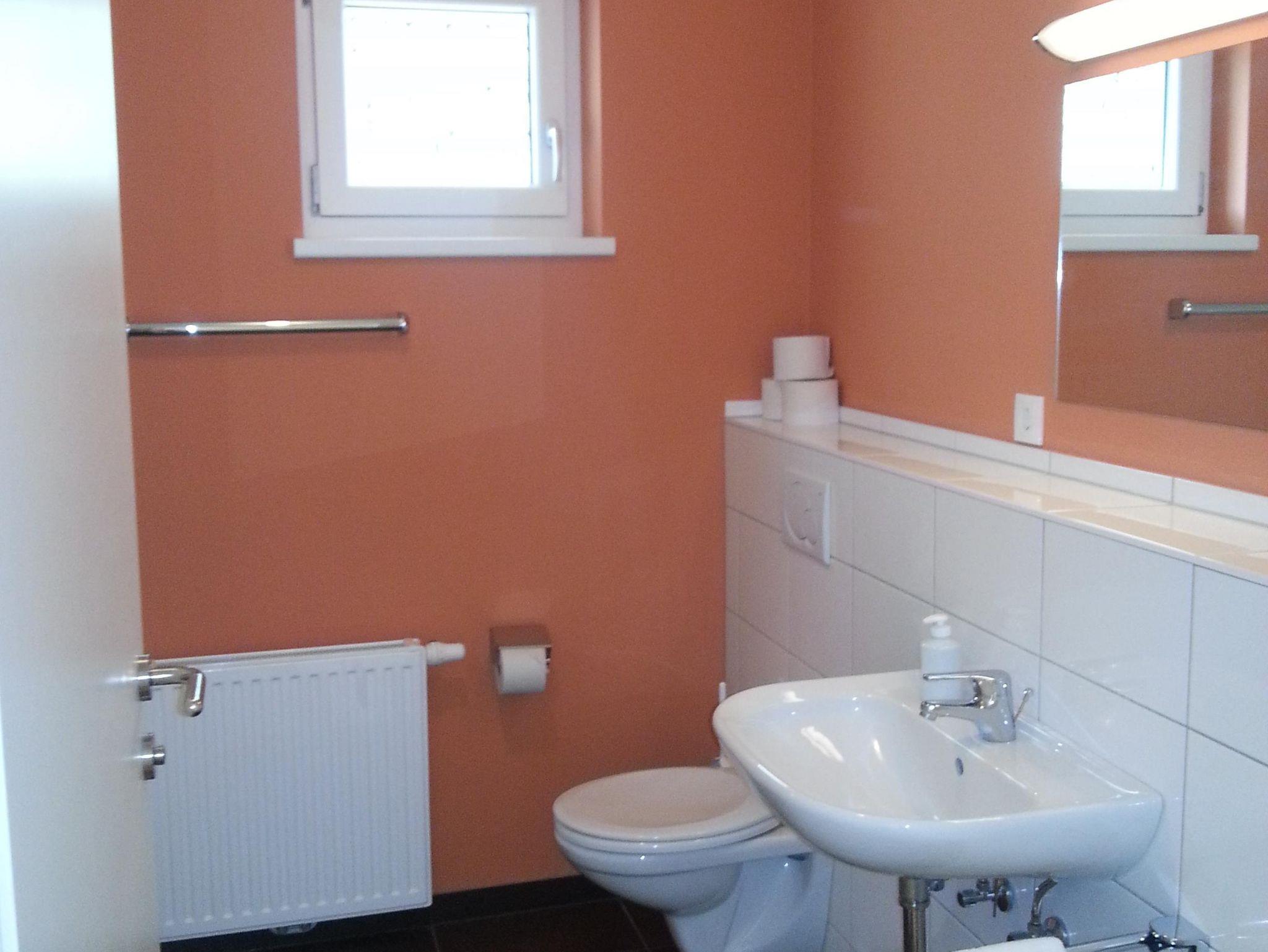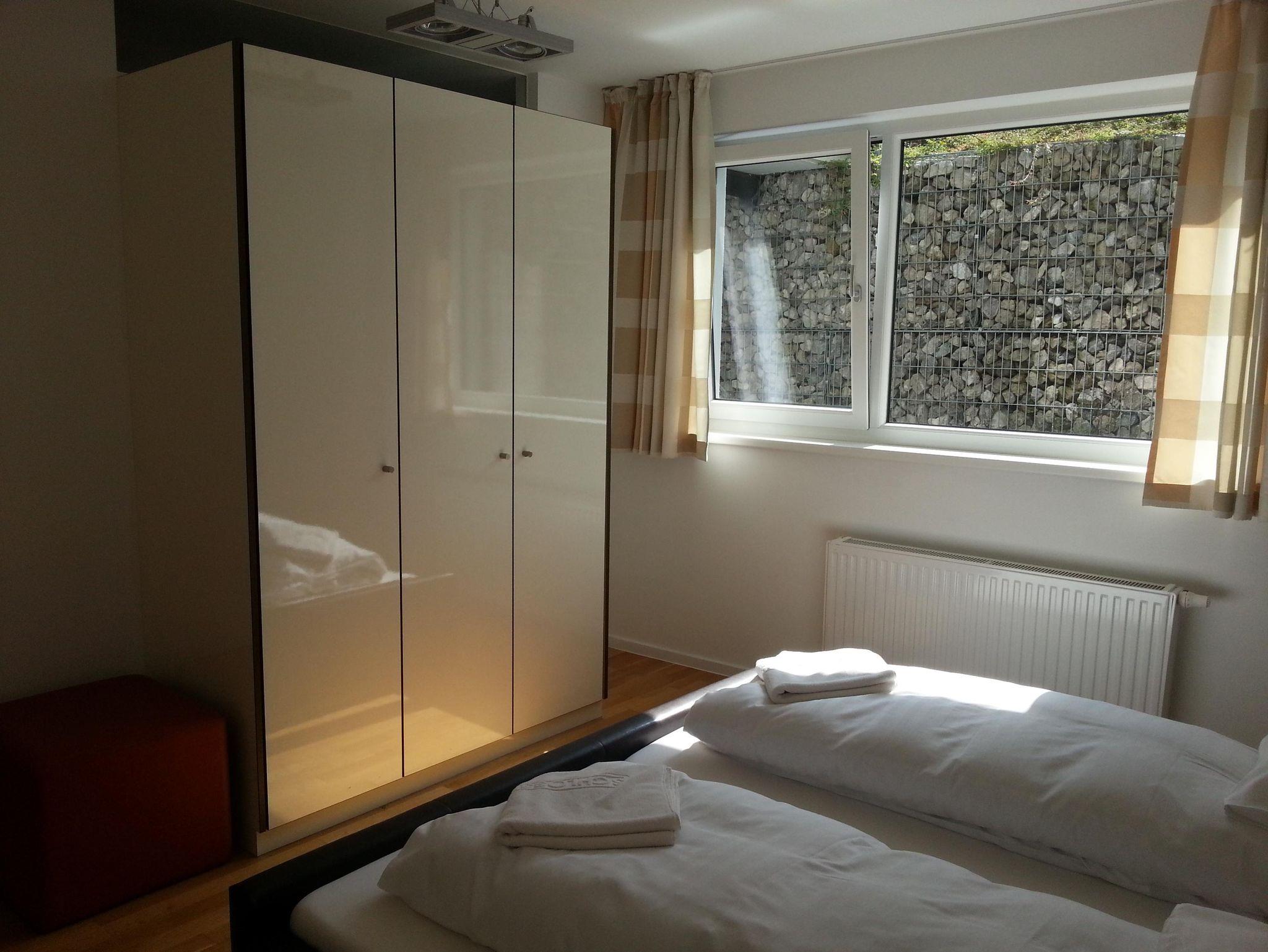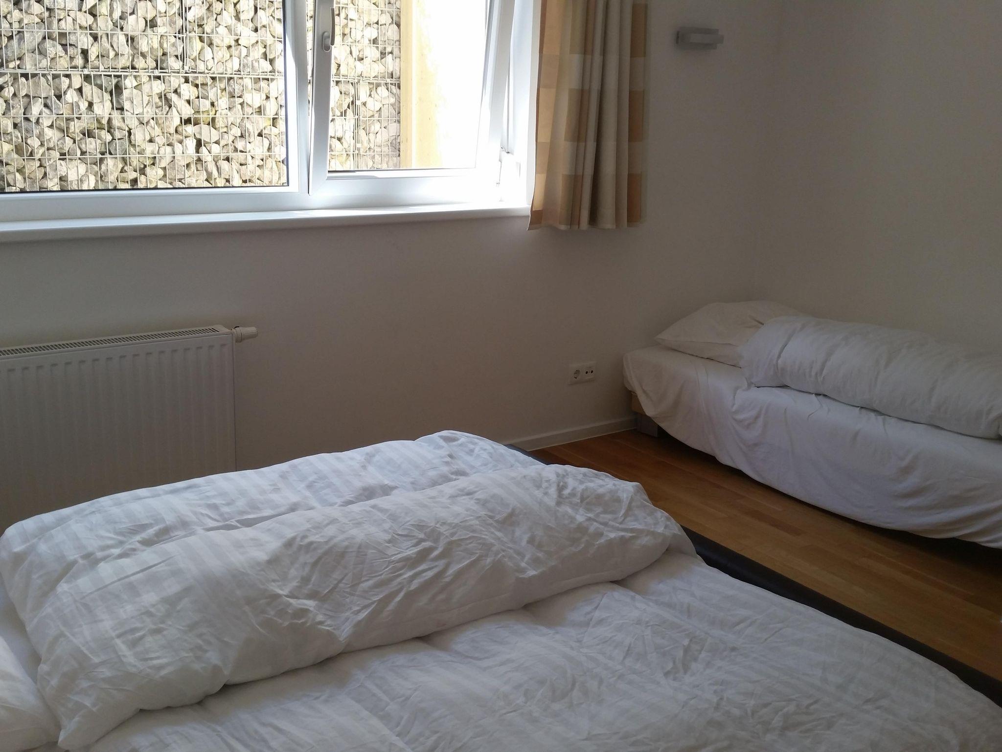 Dich erwarten 2 Schlafzimmer (einmal Doppelbett und Einzelbett [Das Einzelbett ist von 1,80 Metern Länge.], einmal Doppelbett), Wohnküche, sowie 2 Badezimmer (einmal inklusive Badewanne, WC und Waschbecken - einmal inklusive Dusche, WC und Waschbecken).