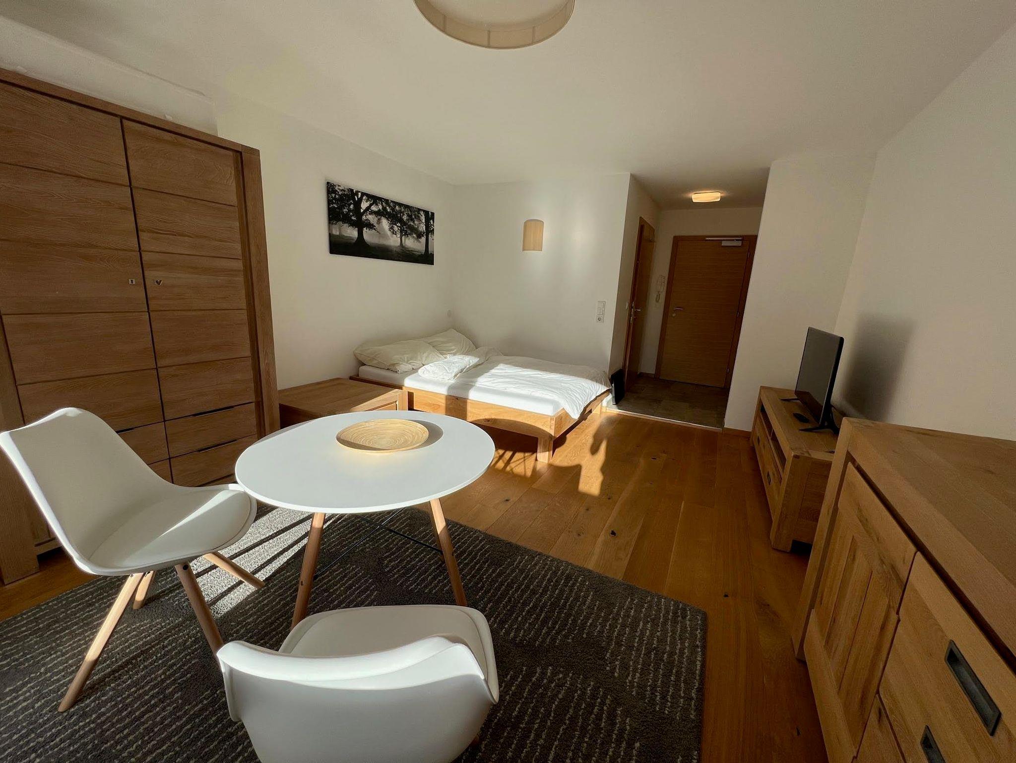 Willkommen in der Wohnung Top 11, deinem perfekten Rückzugsort für einen erholsamen Aufenthalt für 2 Personen. Die 28m² große Wohnung befindet sich im 2. Stock und ist mit Eichenparkett, Esstisch (für 2 Personen), Doppelbett, Schrank, Kommode und TV ausgestattet. Die kleine Einbauküche besitzt einen Herd, Mikrowelle, Kühlschrank und Geschirrspüler. Im Bad befinden sich eine Regenschauerdusche, Toilette und ein Waschbecken.