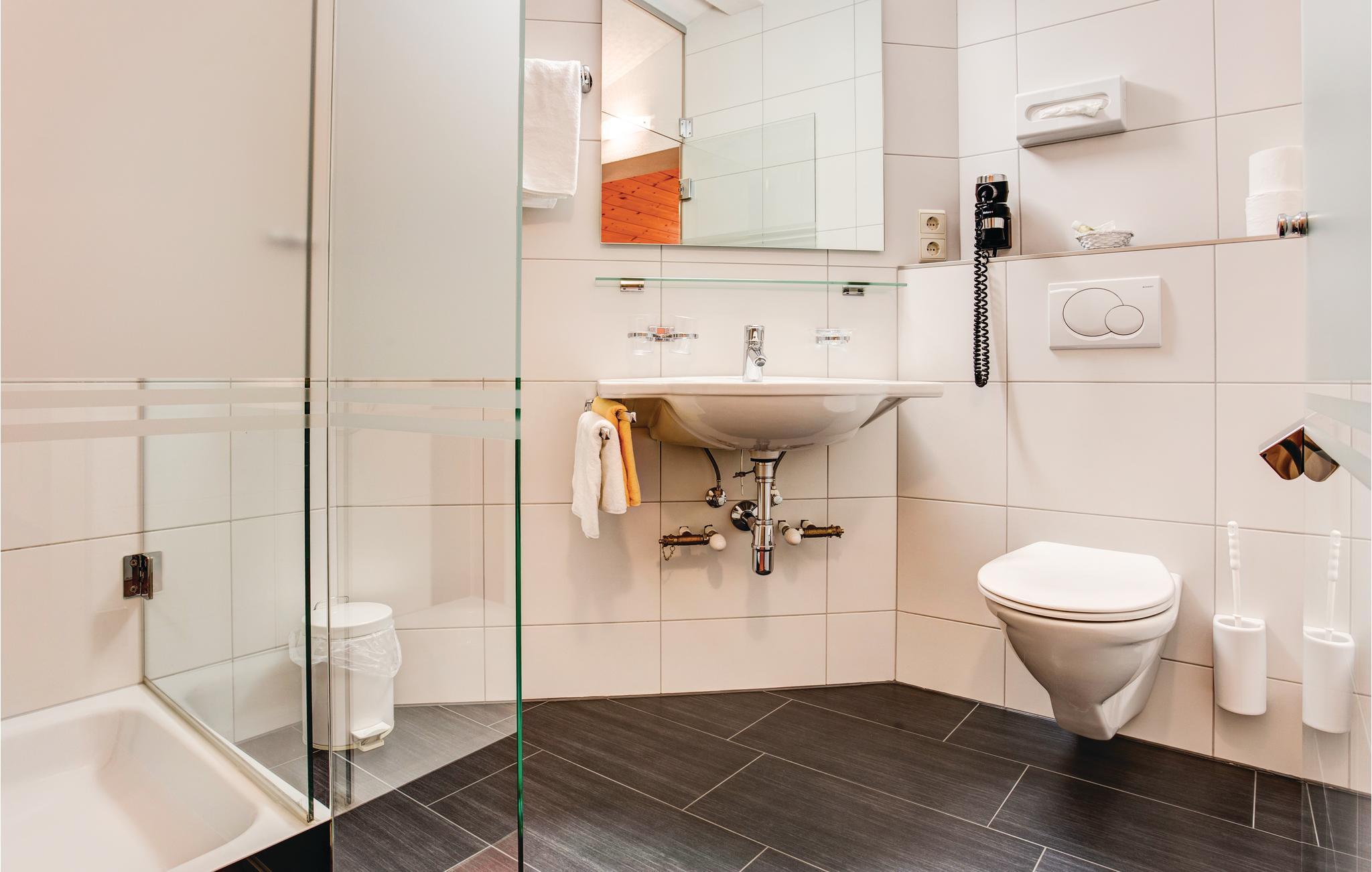 - WC med varmt och kallt vatten, Dusch och badkar