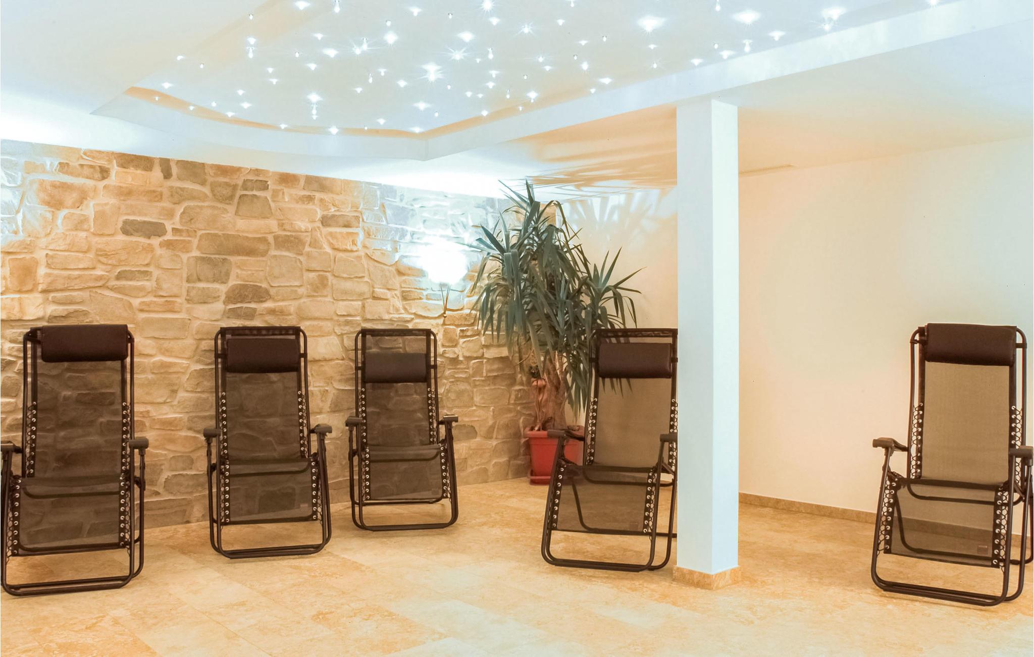 Wellnessavdelningen på marknivå delas av alla gäster och har ångbad, finsk bastu och regndusch (på vintern ingår wellnessavdelningen i priset, på sommaren kan den också användas mot en avgift). I trädgården finns en liten lekplats för barn, solstolar och en grillplats. Du är välkommen att använda tvättmaskinen och torktumlaren i tvättstugan mot en avgift (strykjärn finns). Barnsäng och barnstol på begäran.