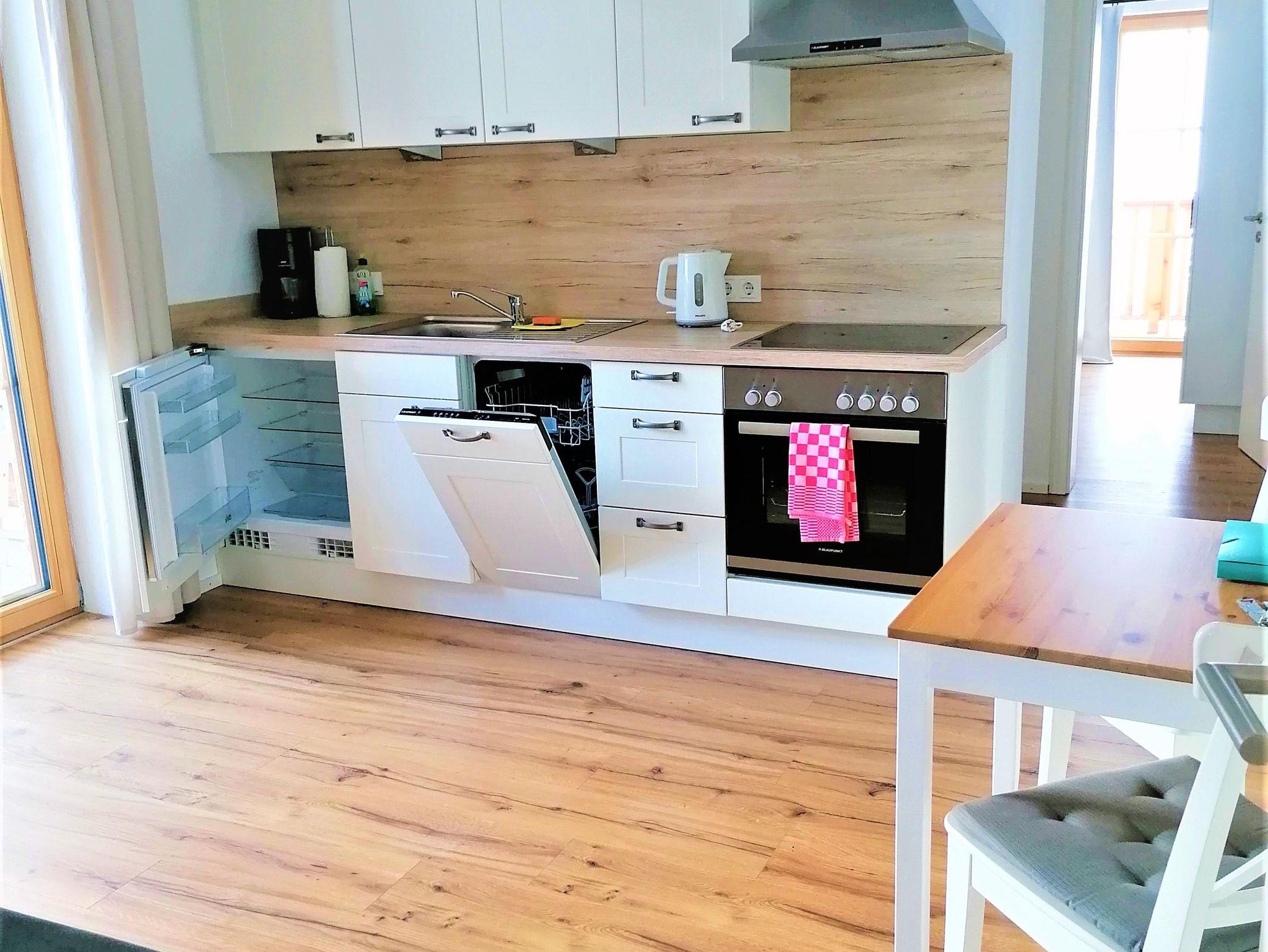 Unsere Ferienwohnung Bergkristall ist ca. 40 m2 groß und verfügt über ein Schlafzimmer mit Zirbenbett, eine vollausgestattete Küchenzeile,Wohn-Essbereich, ein Bad mit Regendusche und WC sowie über einen Balkon mit Panoramablick