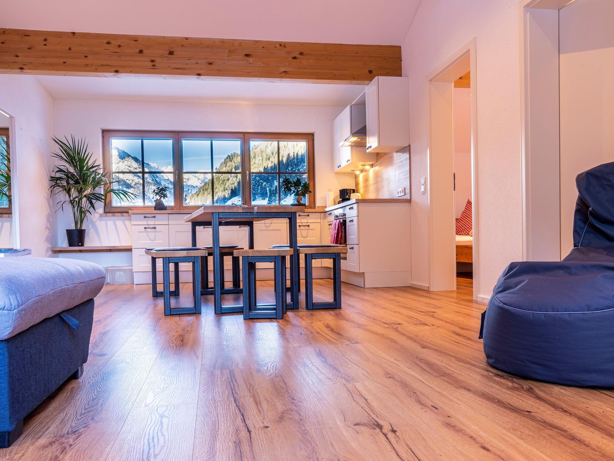 Alle Ferienwohnungen verfügen über eine vollausgestattete Küchenzeile, einen Wohn-Essbereich, Balkon mit Panoramablick, Schlafzimmer mit Zirbenbett sowie ein Bad mit Regendusche und WC.