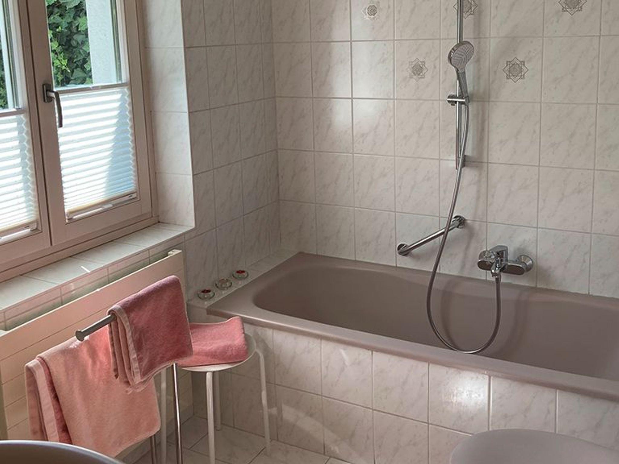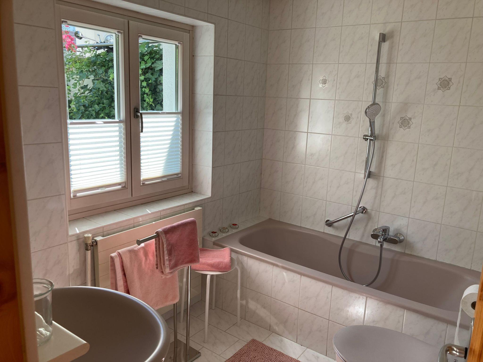 Die Ferienwohnung ist ebenerdig und von der Terrasse mit 3 Stufen erreichbar. Im Bad gibt es eine Badewanne mit integrierter Dusche