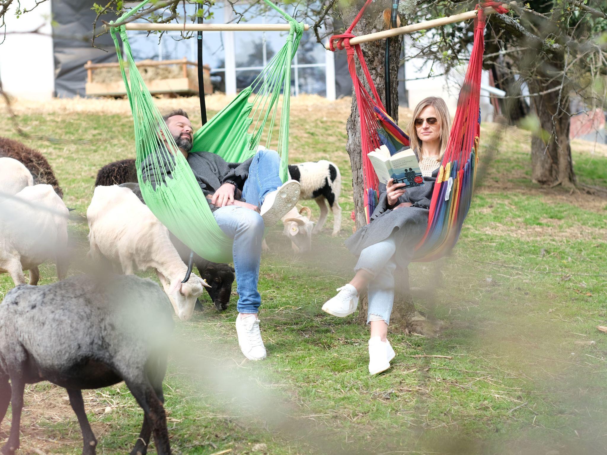Our farm is situated on a hill with a wonderful view and beautiful, unspoilt countryside. Sauna and whirlpool are available for the guests of our 5 flats, in addition there are 2 barbecues, places to linger on our large property, hammocks in the sheep pasture and much more. We have our own sheep and chickens, which you are of course welcome to visit!