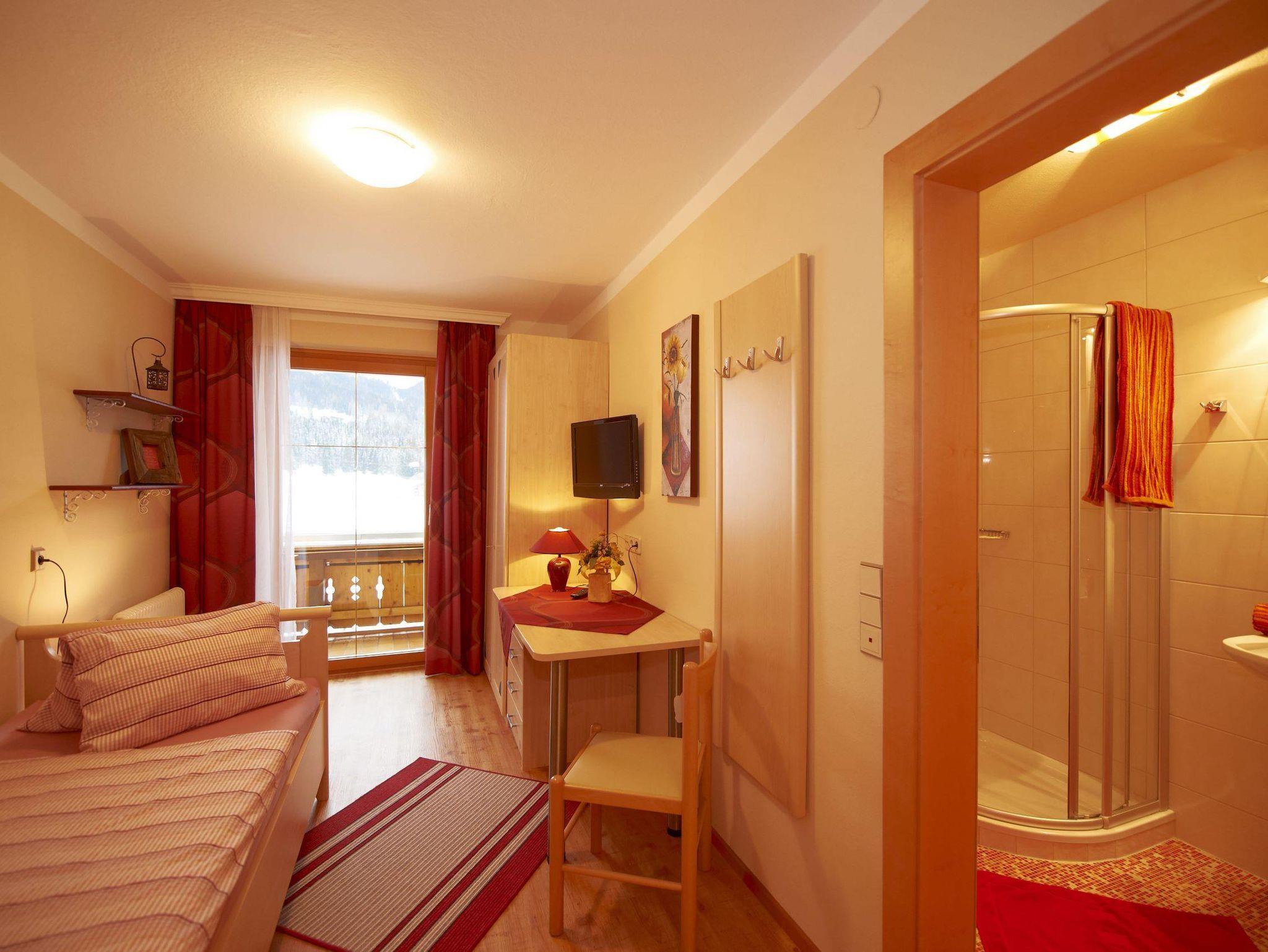 Zimmer mit DU/WC, Sat-TV,gratis Internet, Balkon und schönem Ausblick auf die Berge. Genießen Sie morgens ein reichhaltiges Frühstück.