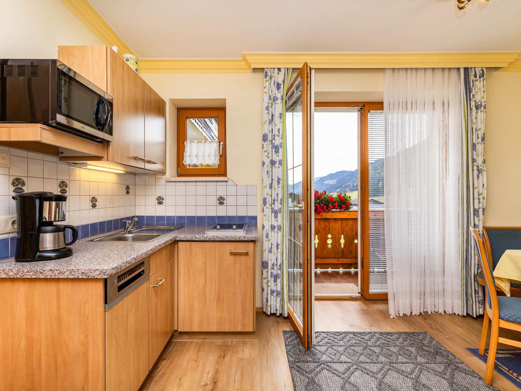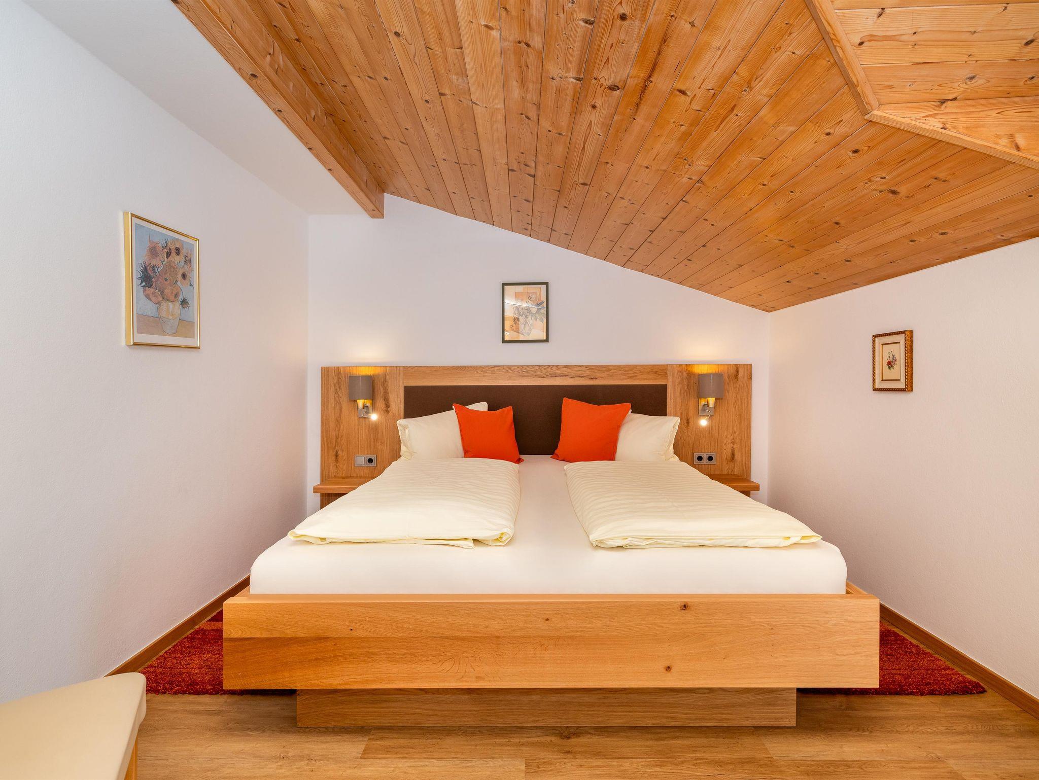 Unsere Giebelwohnung bietet Ihnen bis zu drei getrennte Schlafzimmer, jeweils mit eigener Dusche und WC. In der Wohnung, die komfortabel und komplett eingerichtet ist, befindet sich ein Flat-Sat-TV, Gratis Internetanschluss, Parkettboden und Balkon. Bettwäsche und Handtücher sind vorhanden. Frühstück ist auf Wunsch gegen Aufpreis jederzeit buchbar.