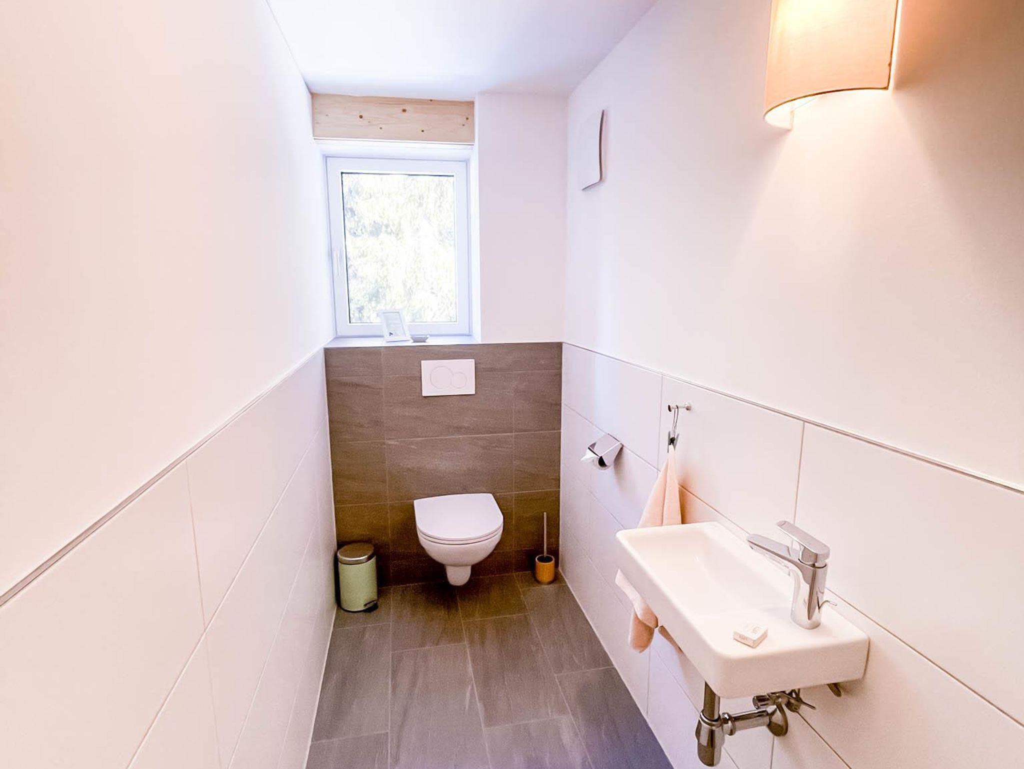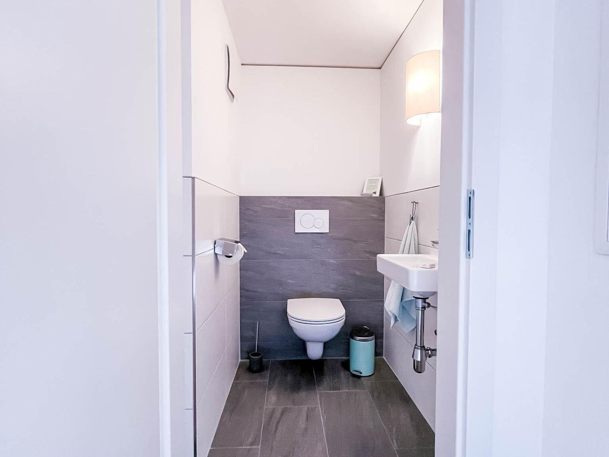Die Wohnung verfügt über ein Badezimmer mit Dusche und Fön sowie ein separates WC.