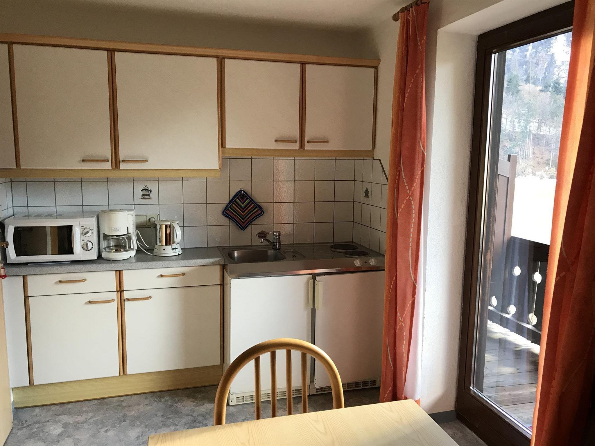 Mikrowelle, Kaffeemaschine, Wasserkocher, Toaster, große Ausziehcouch, gemütliche Essecke mit Eckbank, SAT-TV, gratis WLAN, Radio, Handtücher, Bettwäsche, Balkon mit herrlichem Blick auf die Loferer Steinberge.