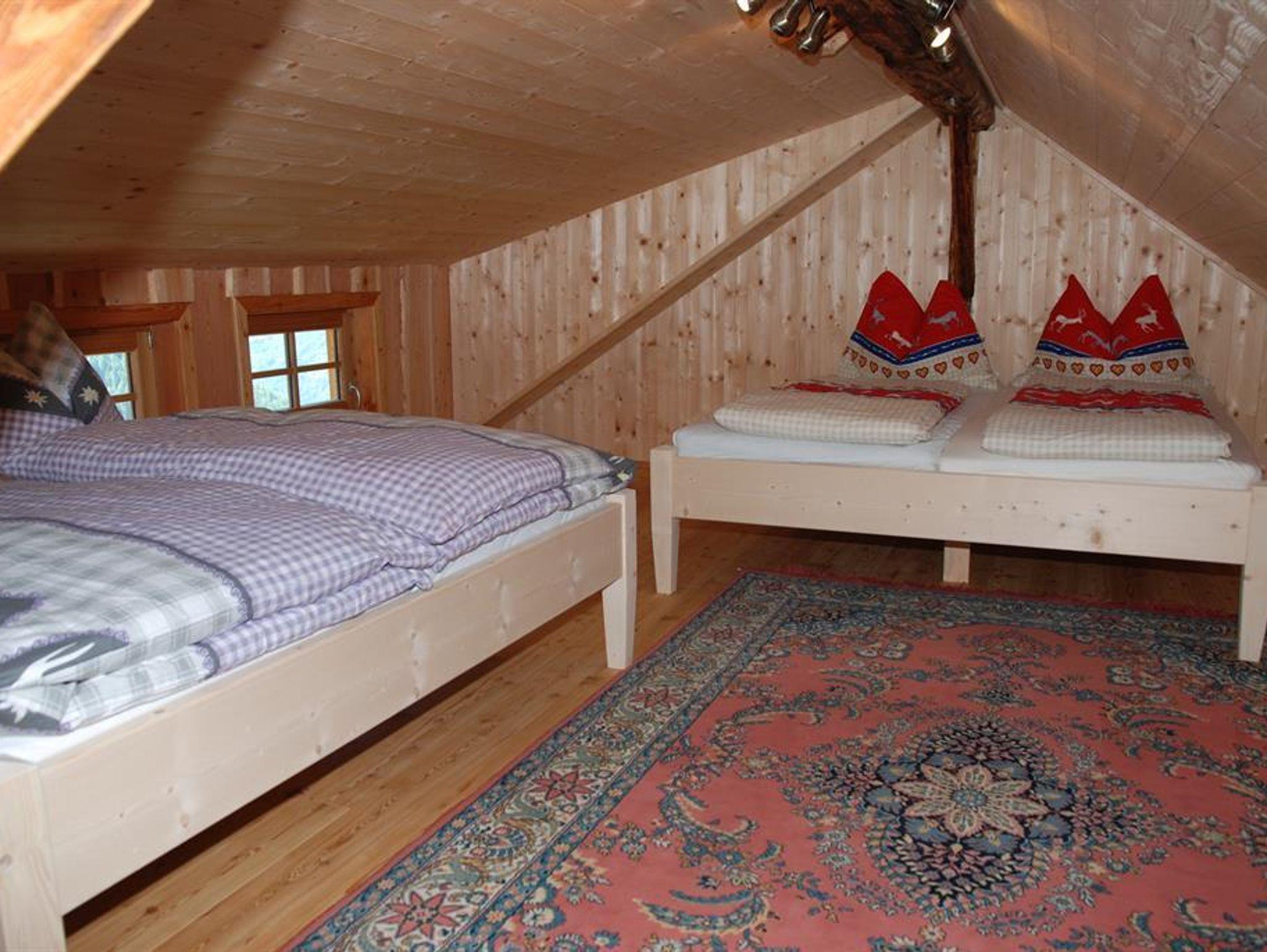Erholung auf 1680m - komfortables & gemütliches Ambiente Im Erdgeschoss befindet sich eine gemütliche Hüttenstube mit Sitzecke und Relaxliege, Küchenteil, Warmwasser,Abwasch und Holzofen. In unmittelbarer Nähe zu dem einzigartigen, aus Zirbenholz angefertigten Doppelzimmer befindet sich eine Innentoillete , ein kühler Lagerkeller sowie der Badebereich mit einer original finnischen Sauna mit Holzofen und Dusche. Für kuschelige Wärme sorgt eine, von der Hüttenstube befeuerte Zentralheizung. Über dem Vorraum mit Garderobe kommen Sie zum Ausgang mit überdachter Terrasse mit mehreren Sitzplätzen, wo Sie die herrliche Fernsicht über eine einzigartige Bergwelt genießen können. Das Obergeschoss ist mit einem Doppel- und einem Vierbettzimmer ausgestattet. Eine Photovoltaikanlage bietet genügend Strom für den Alltag. Zusätzlich sorgt ein Grillplatz und Brunnen vor der Hütte für die entsprechende Romantik. Die Müllnerhütte ist eine Selbstversorgerhütte und ist mit einem PKW auf eigene Gefahr erreichbar. Bettwäsche, Geschirrtücher & Handtücher etc. sind mitzubringen.