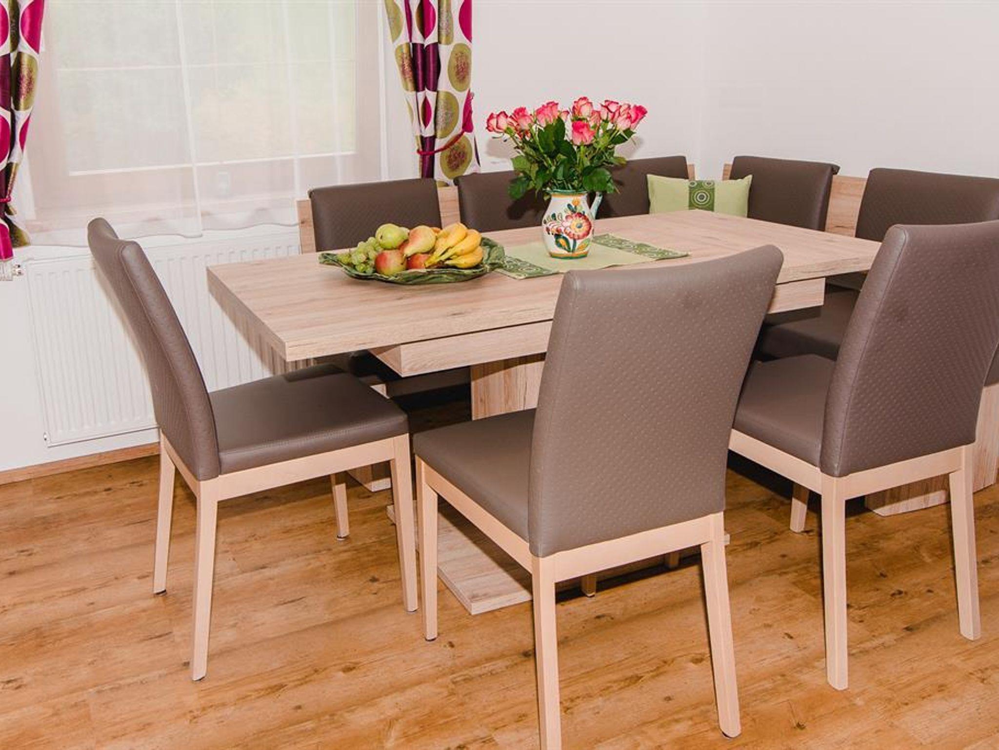 Unser Haus liegt am Ortsrand in ruhiger Lage, 100 Meter von der Landstraße entfernt. Radweg führt direkt vor dem Haus vorbei. Die Ferienwohnung verfügt über 70 m². Eingang im Erdgeschoß mit Treppe zur 1. Etage. Wohnraum mit Couch, Küchenzeile, Essecke, Flat-TV. 2 Doppelzimmer und 1 Einbettzimmer. 2 Duschen mit WC . Alle Zimmer mit TV und Balkon. Gartenbereich mit Terrasse. Schöner Blick auf die umliegenden Berge. Zum Hauptort St. Michael 3 km entfernt. Brötchenservice, kostenloser Parkplatz, Bushaltestelle 100m entfernt.
