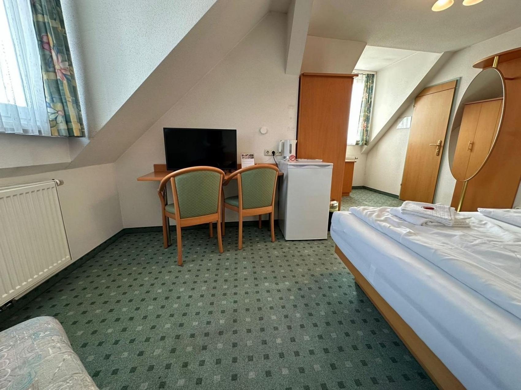 Ihr großes Doppelzimmer Nr. 207 im 2. Stock ist ausgestattet mit einem Doppelbett (Kingsize), TV, Kühlschrank, Schreibtisch, WLAN, Duschbad/WC.