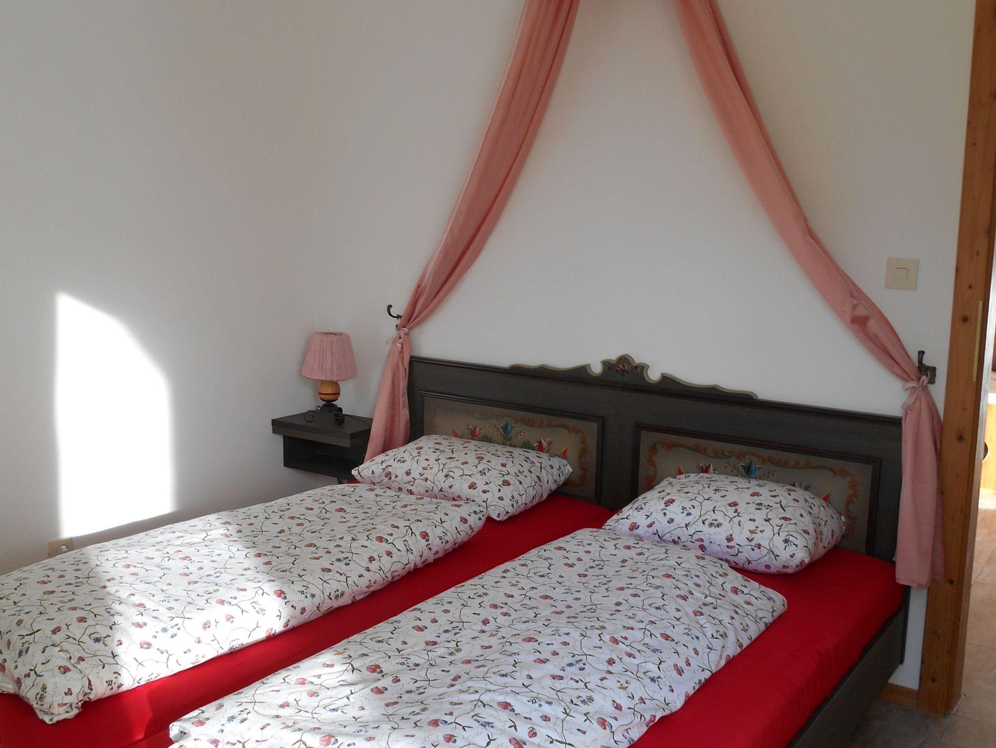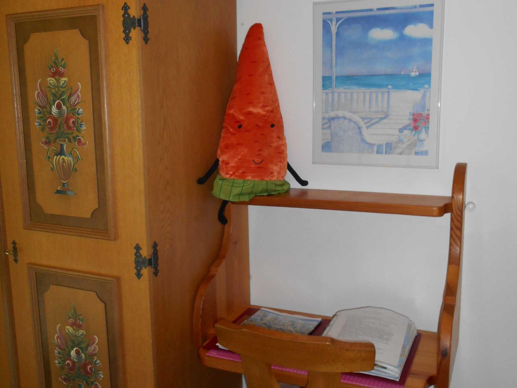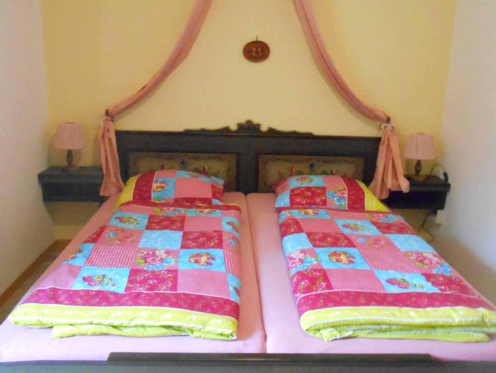 1 x großes Doppelbett im Elternschlafzimmer, mit Kleiderschrank und Garderobe und