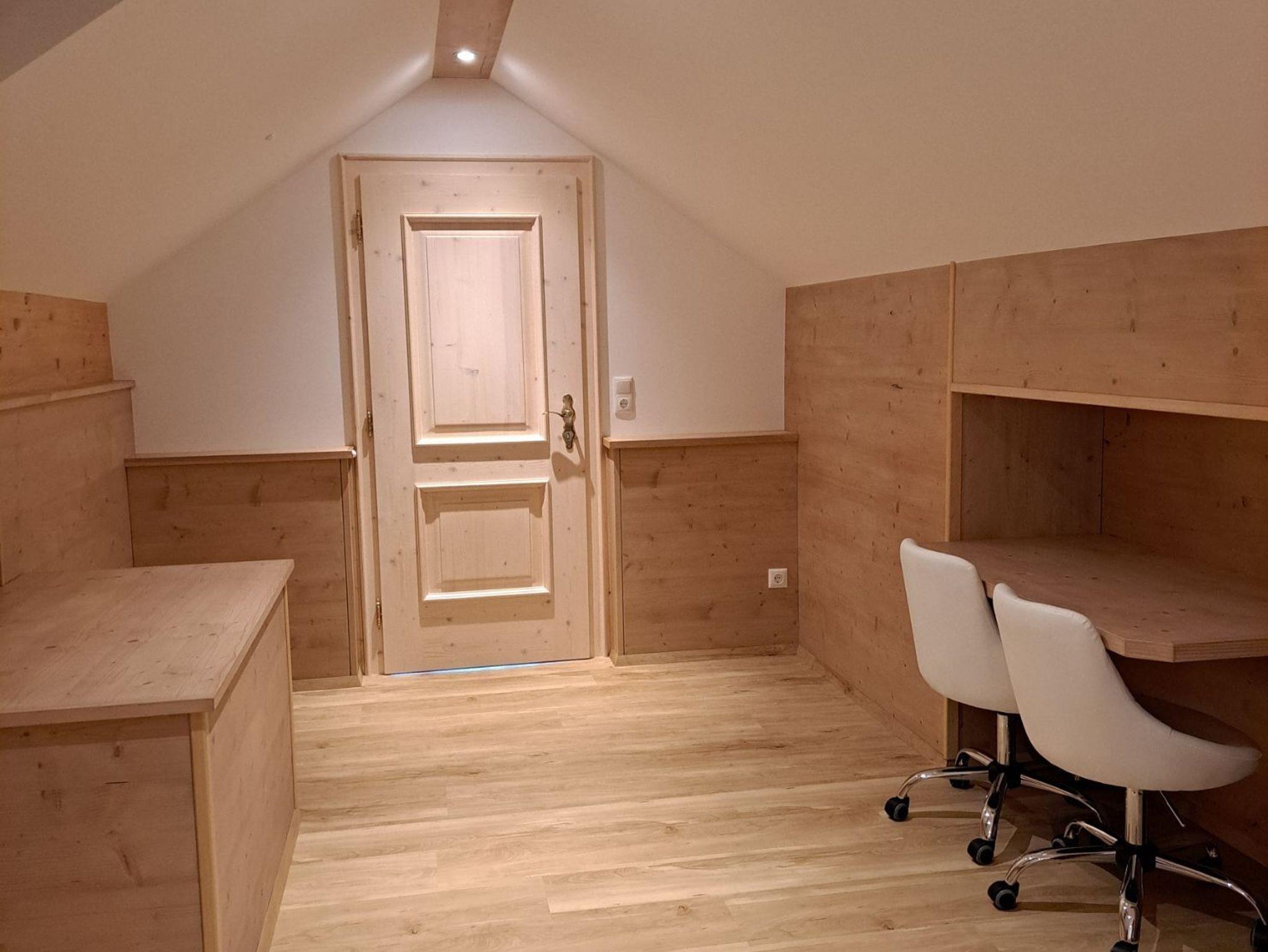 Im ersten Stock befindet sich das erste Schlafzimmer mit Doppelbett großräumigen Kasten und gemütlichen Sitzgelegenheiten zum lesen und zurückziehen. Im zweiten Stock finden Sie dann unser zweites Schlafzimmer mit Doppelbett, einer kleinen Wohnlandschaft, Sat TV, dem kleineren Bad und einer traumhaften Aussicht auf die umliegenden Berge. Vom Schlafzimmer ist auch unser großräumiger Balkon zugänglich. Über eine kleine Treppe im 2 Stock gelangen Sie ins dritte Schlafzimmer (Kinderzimmer) mit zwei Einzelbetten einen Schreibtisch mit zwei Sesseln und viel Platz zum spielen.
