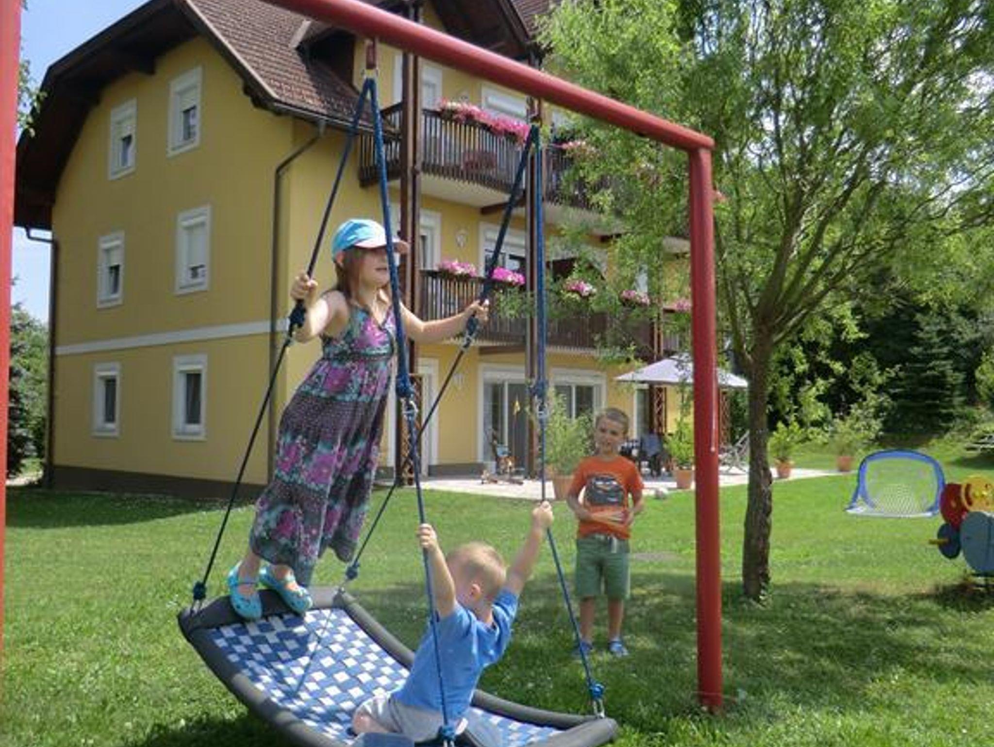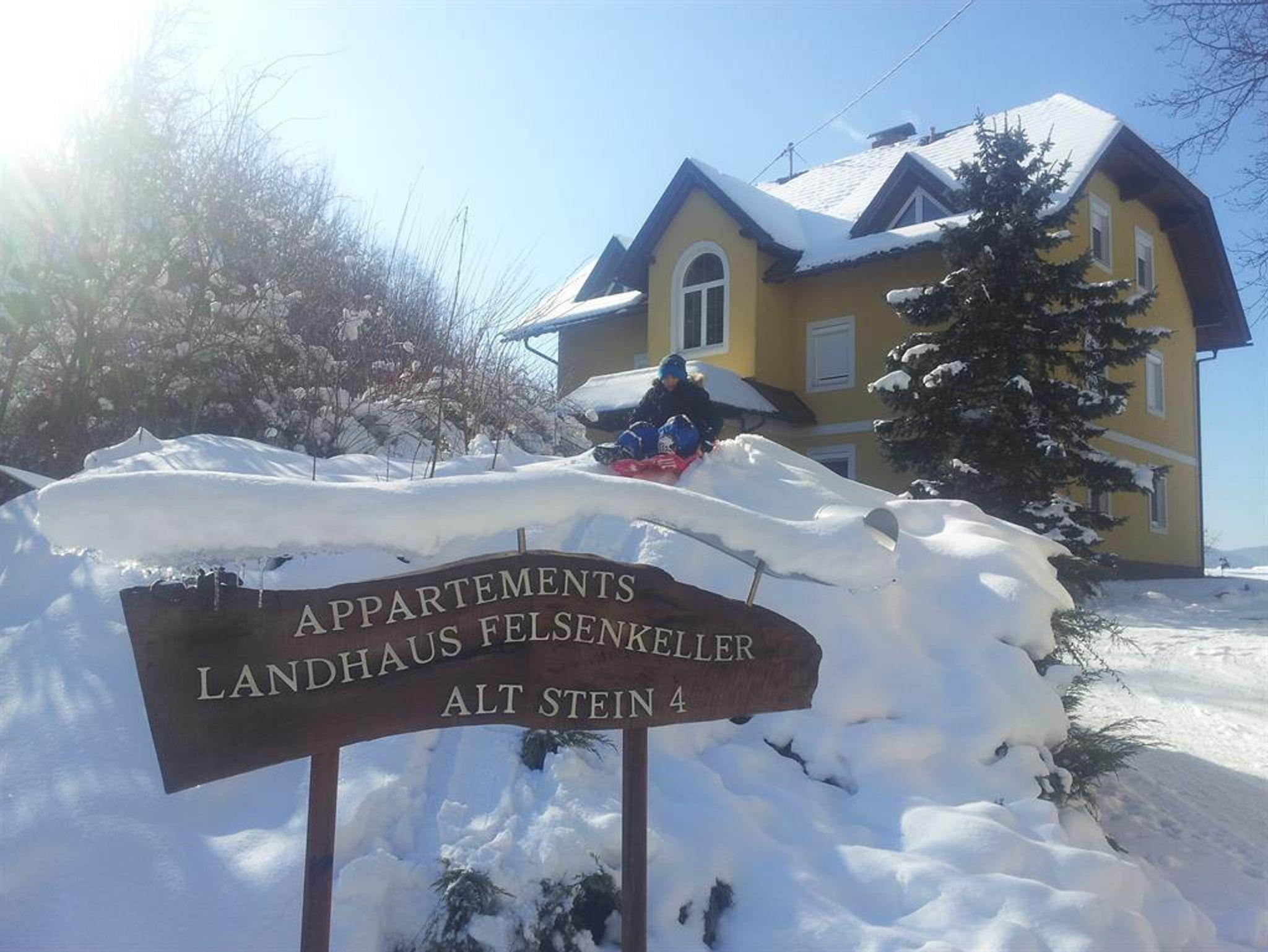 Willkommen in der naturbelassenen Landschaft Unterkärntens, hier liegt Stein im Jauntal nur 3 km westlich von St.Kanzian am Klopeiner See entfernt. Direkt unter der historischen Wehrkirche von Stein finden Sie unser familiär geführtes Landhaus Felsenkeller. Die natürliche Umgebung, der weitläufige Garten sowie das Ambiente der heimelig eíngerichteten Appartements machen Ihren Ferienaufenthalt zu einem unvergesslichen Urlaubs-Erlebnis. Die Gastgeberin des Hauses, Claudia Tschom-Fux sorgt persönlich dafür, dass Sie Ihre kostbarsten Tage des Jahres mit Ihrer Familie genießen können, und gibt Ihnen gerne Tipps für die Gestaltung Ihres Urlaubes. Freuen Sie sich auf einen eigenen Zugang zum Klopeiners See, eine Liegewiese, ein Strandhaus und ein Tretboot, das Ihnen kostenfrei zur Verfügung steht. Der Ausblick vom Landhaus reicht weit bis über das Klagenfurterbecken bis hin zum Pyramiden-Kogel. Jedes Apartment verfügt über einen Balkon mit Gartenblick, 2 Schlafzimmer, einer Wohnküche mit einer Küchenzeile oder Küchenblock, Sat-TV sowie ein Badzimmer mit einer Dusche, WC extra. Eine Waschmaschine und ein Trockner stehen Ihnen ebenfalls auf Anfrage kostenfrei zur Verfügung. Der große Garten des Landhaus Felsenkellers lockt mit Kinderspielplatz, Trampolin, Liegestühle, Grillmöglichkeiten und einer Lagerfeuerstelle. Streicheltiere und ein überdachter Spielbereich für Kinder sind ebenfalls vorhanden. Einfache Fahrräder stehen Ihnen kostenlos für Ihre Ausflüge zum See zur Verfügung. Für Ihre eigenen Fahrräder ist ein Abstellraum vorhanden. Der Drauradweg ist 1,5 km entfernt, den Wildensteiner Wasserfall erreichen Sie nach 10 km. Geschäfte und Restaurants befinden sich etwa 2,5 km entfernt. Von Klagenfurt trennt Sie eine 25-minütige Fahrt mit dem Auto.