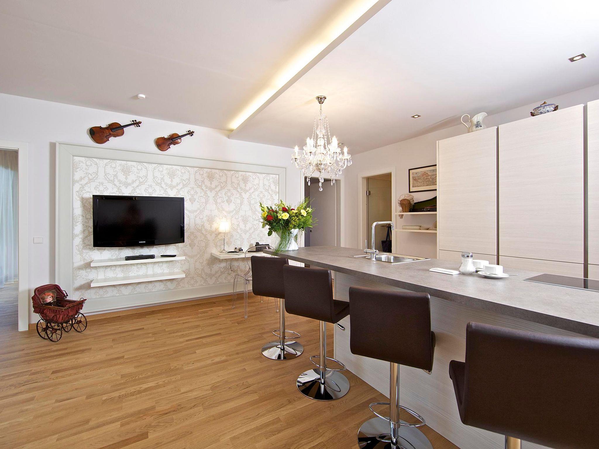 Alle unsere Apartments verfügen über einen eigenen Balkon oder Terrasse mit oder ohne Blick zum See, separate Wohn- und Schlafbereiche sowie eine moderne Küche mit Induktionsherd.