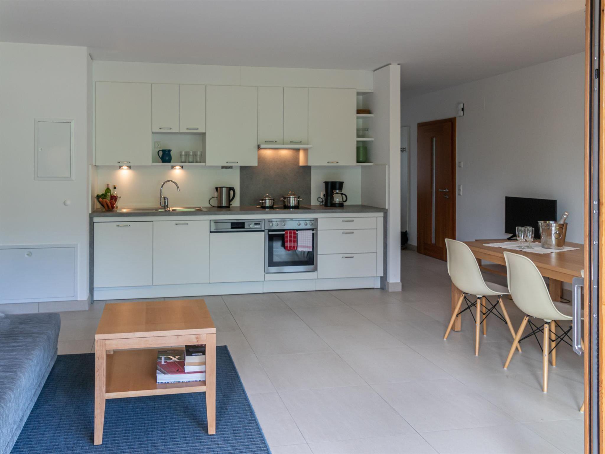 Bleistätter Haus Apartment 40m2. Das Haus ist in moderner See-Architektur gebaut. Das Apartment hat einen geräumigen lichtdurchfluteten Wohnraum mit Schlafcouch Möglichkeit, Küche mit Geschirrspüler, E-Glass Kochplatte, Mikrowelle, Kühlschrank, Esstisch, gemütliche Sitzecke mit Leselampe, 1 kleines Schlafzimmer (Bett 160x200), Badezimmer mit Dusche. Großer überdachter Wohnbalkon in Süd-Ostlage mit Gartenmöbel und Blick auf das Naturschutzgebiet Bleistätter Moor, Tiebel-Fluss Gebiet und Teilweise auf unseren Campingplatz. In ein bis zwei Minuten spazieren sie über unsere eigene Anlage zum See.