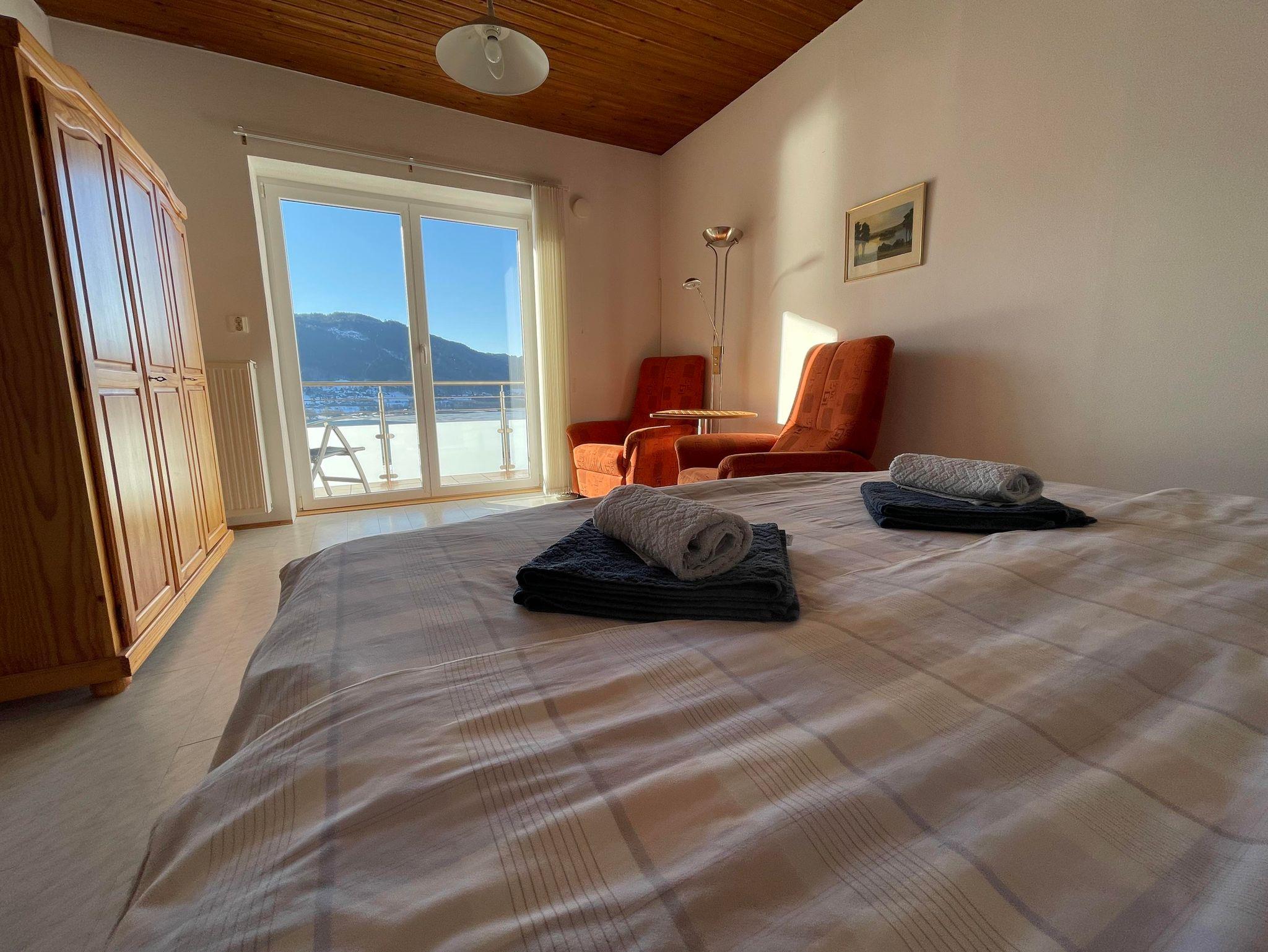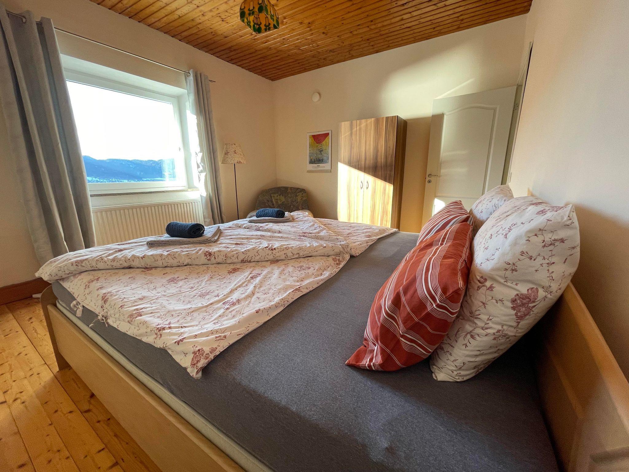 Neben den Schlafzimmern, einem geräumigen Wohnzimmer und zwei großzügigen Terrassen können Sie aus den Zimmern den Blick über den See genießen.